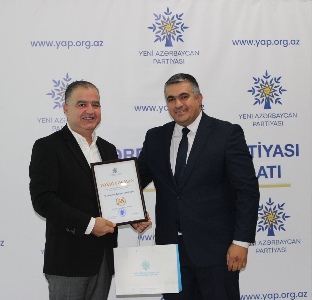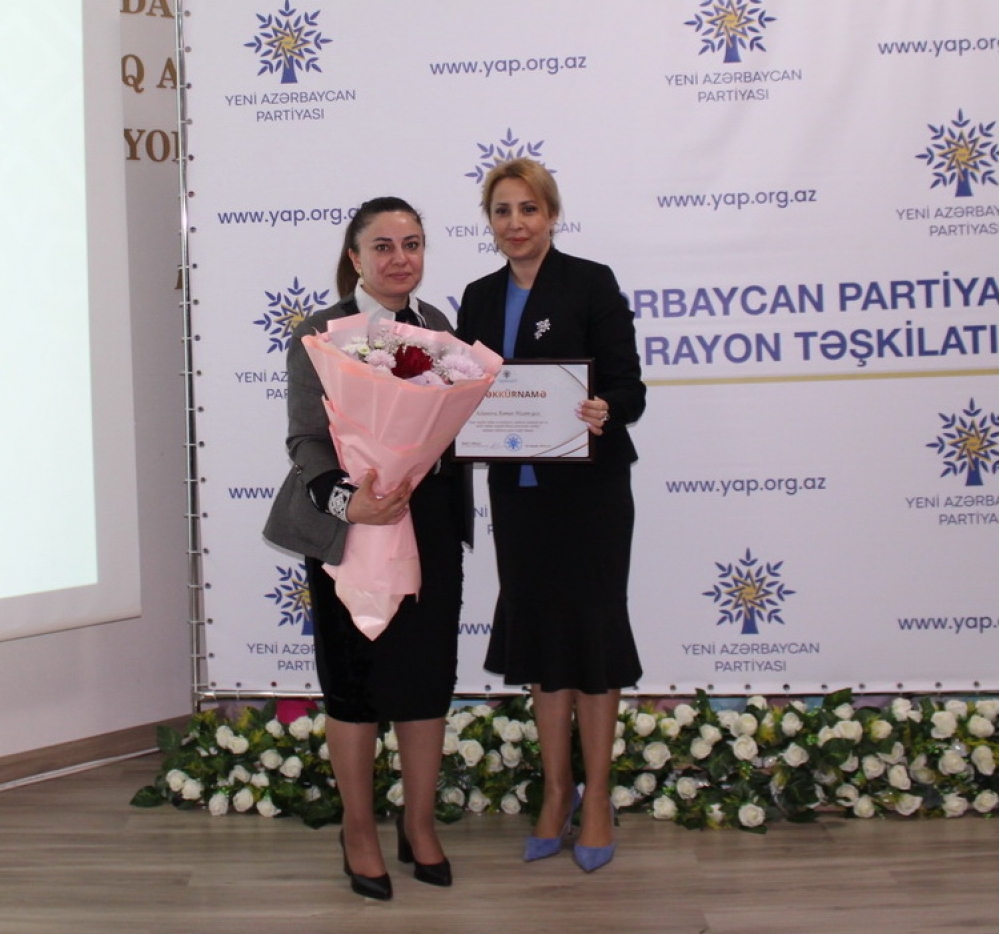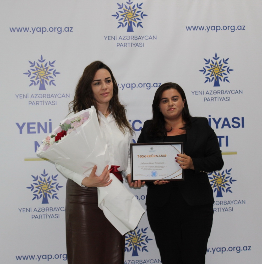 Çıxışlardan sonra mükafatlandırma mərasimi keçirilib. Mərasimdə təhsildəki uğurlarına və ictimai fəallıqlarına görə bir qrup müəllimə təşəkkürnamələr verilib. Həmçinin, bu il yubiley yaşını qeyd edən və partiya veteranı olan müəllimlər Fəxri fərmanla təltif olunublar. Eləcə də Yeni Azərbaycan Partiyasına üzv olmuş müəllimlərə və tələbələrə vəsiqələri təqdim edilib.