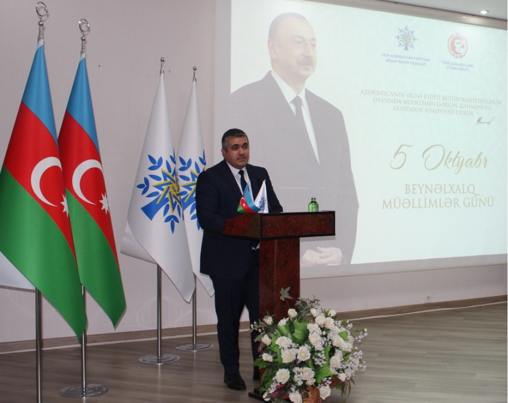 2025-ci il “Konstitusiya və Suverenlik İli” çərçivəsində Yeni Azərbaycan Partiyası Nizami rayon təşkilatının və Türk Ağsaqqalları İctimai Birliyinin birgə təşkilatçılığı ilə 5 oktyabr - Beynəlxalq Müəllimlər Günü münasibətilə “Azərbaycanın uğurlarının əsasında müəllimin gərgin zəhməti və gündəlik fəaliyyəti durur” mövzusunda tədbir keçirilib.