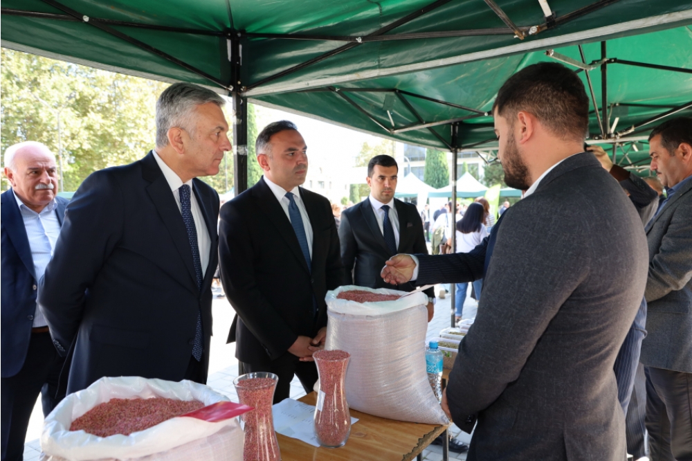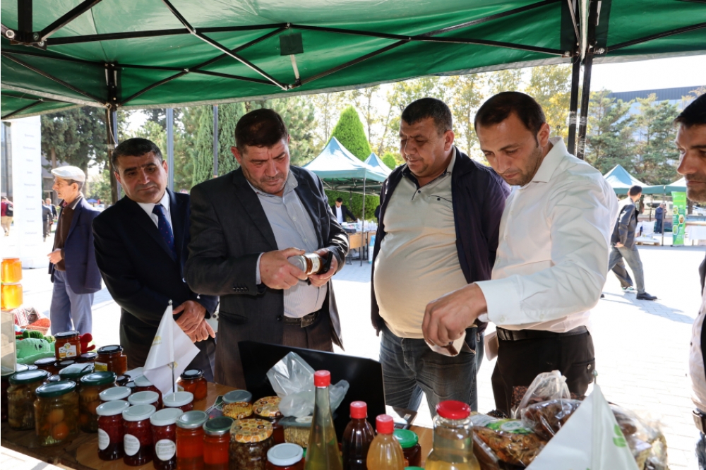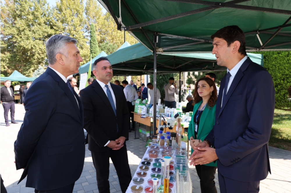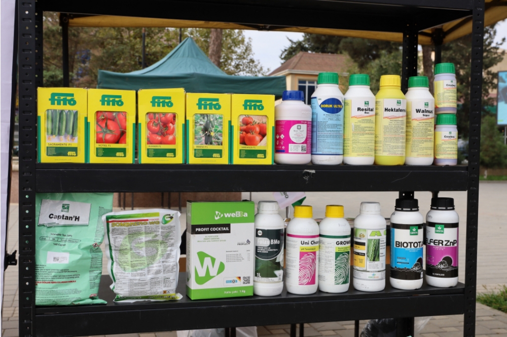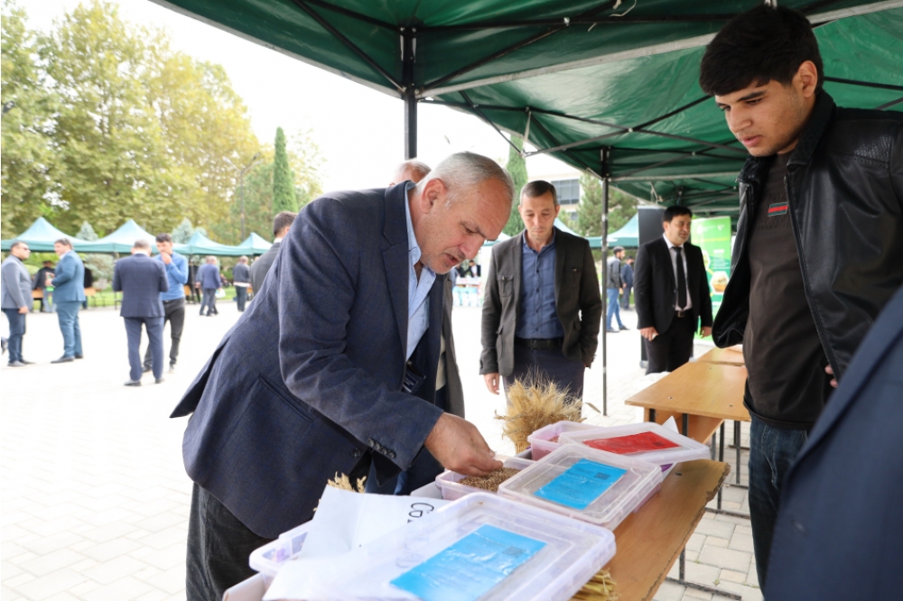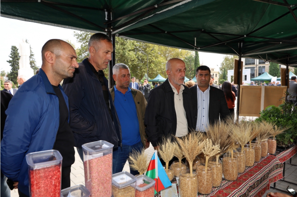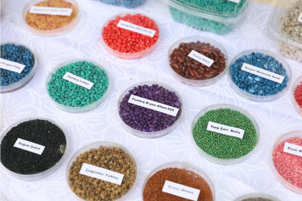 Daha sonra iştirakçılar sərgi stendlərinə baxış keçirərək təqdim olunan toxum sortları və müxtəlif aqrar məhsullarla tanış olublar.