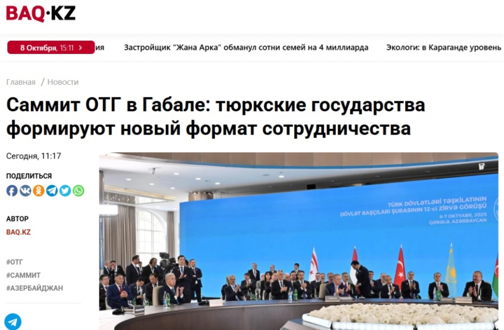 Qazaxıstan mətbuatı Qəbələdə keçirilən Türk Dövlətləri Təşkilatının (TDT) Dövlət Başçıları Şurasının 12-ci Zirvə Görüşünü geniş işıqlandırıb.