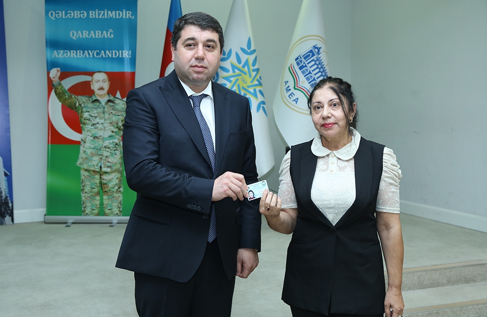 Daha sonra YAP sıralarına qəbul olunan AMEA əməkdaşlarına üzvlük vəsiqələri təqdim olunub.
