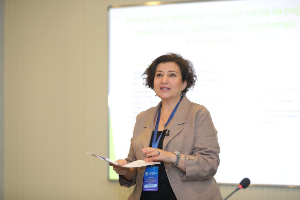 İkinci sessiya isə “Sosial media – informasiya mənbəyi, yoxsa təxribat platforması?” mövzusuna həsr olunub. A.Mahmud jurnalist, bloger və məzmun yaradıcıları üçün etik davranış kodeksi, azyaşlılarla bağlı məlumatların yayımlanmasının hüquqi və etik çərçivəsi, eləcə də beynəlxalq təşkilatların və konvensiyaların bu sahədə müəyyən etdiyi tələblər barədə məlumat verib.