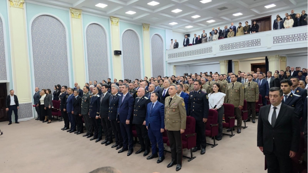 Daha sonra Azərbaycan Respublikasının Dövlət Himni səsləndirilib, ümummilli lider Heydər Əliyevin və Azərbaycanın müstəqilliyi və suverenliyi uğrunda canlarını fəda etmiş şəhidlərin xatirəsi bir dəqiqəlik sükutla yad edilib.