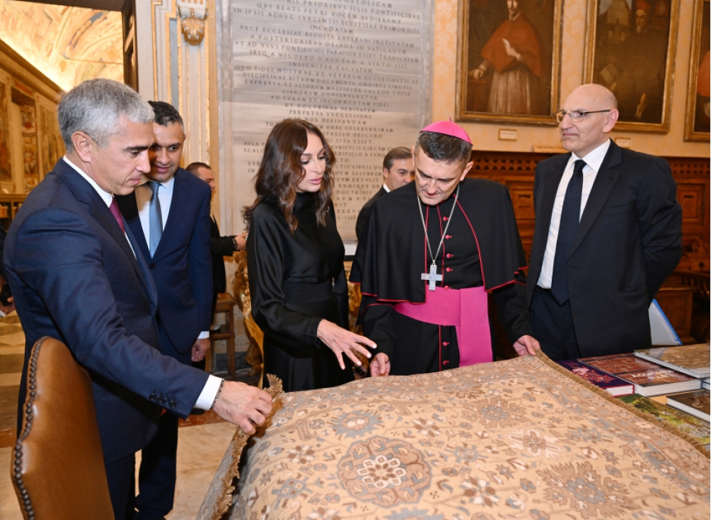 Sonda Azərbaycanın Birinci vitse-prezidenti Mehriban Əliyeva Apostol Kitabxanasına Azərbaycanın tarixi, təbiəti və mədəni irsinə həsr olunmuş bir sıra kitab və nəşrlər hədiyyə edib.