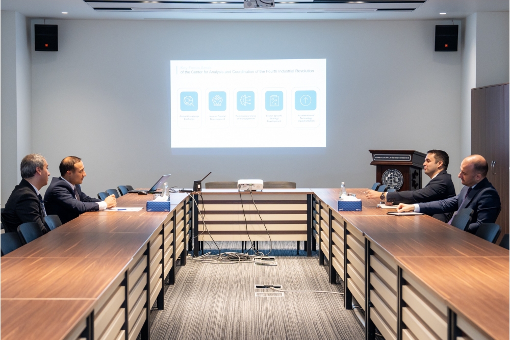 İqtisadiyyat Nazirliyinin tabeliyində Dördüncü Sənaye İnqilabının Təhlili və Koordinasiya Mərkəzinin (4SİM) icraçı direktoru Fariz Cəfərov dördüncü “Yüksəliş” müsabiqəsinin qalibləri Toğrul Yaqublu və Təbriz Əmmayevlə görüşüb.