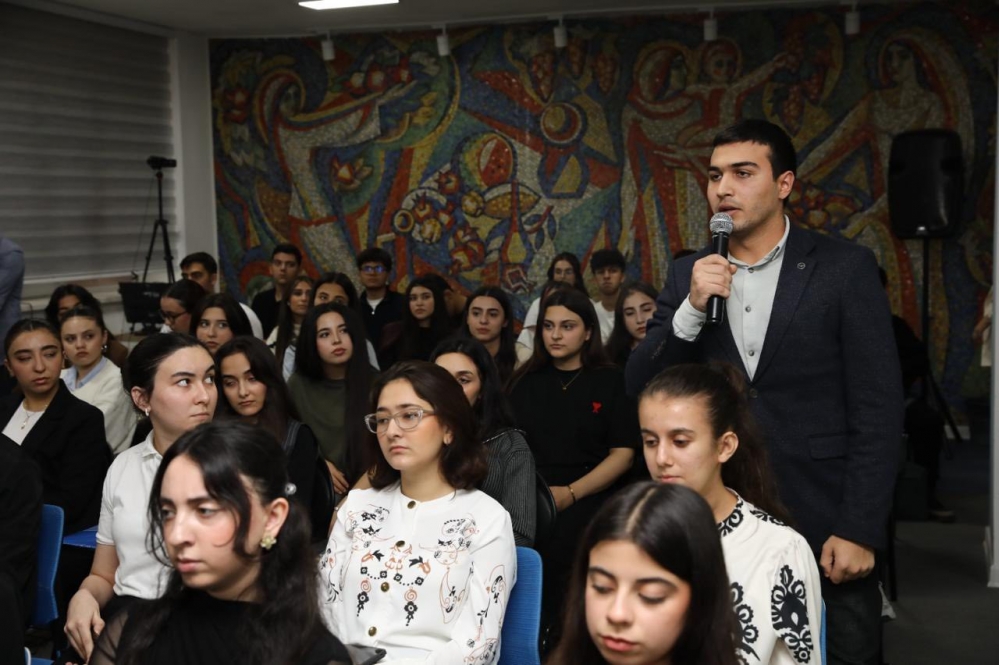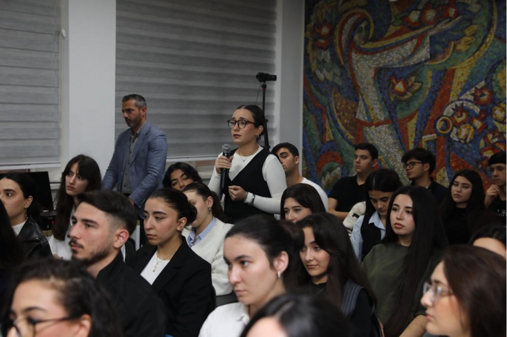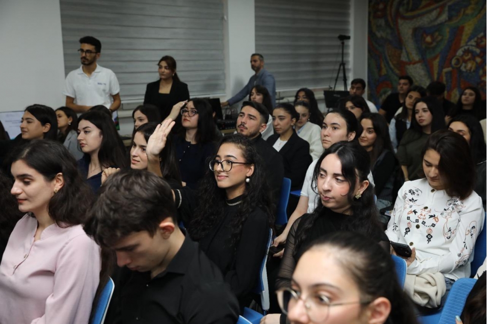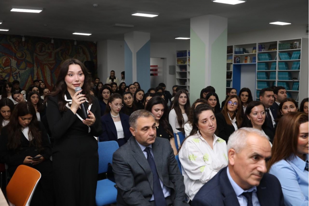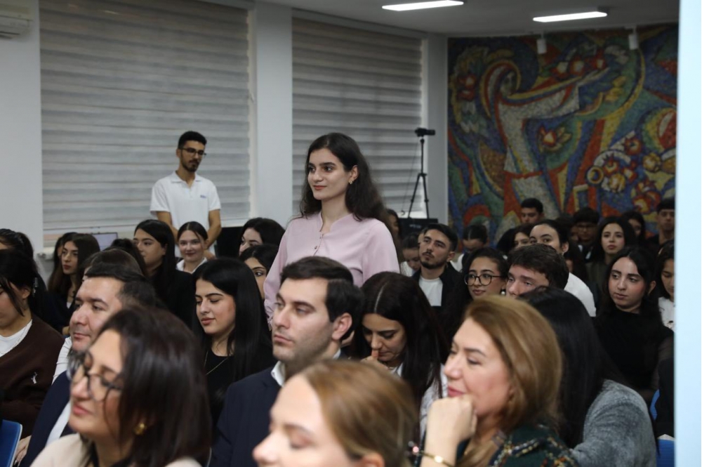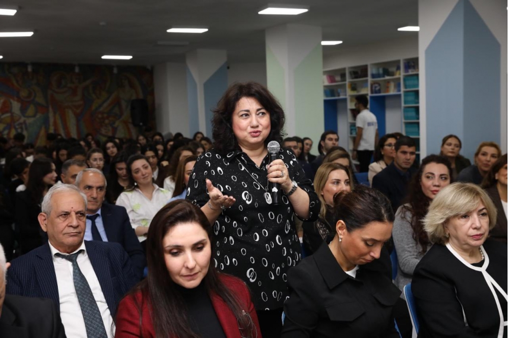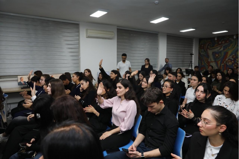 Daha sonra görüş interaktiv şəkildə davam edib, tələbələr və professor-müəllim heyəti professor Dilarə Seyidzadəyə suallar ünvanlayaraq mövzu ətrafında fikir mübadiləsi aparıblar.