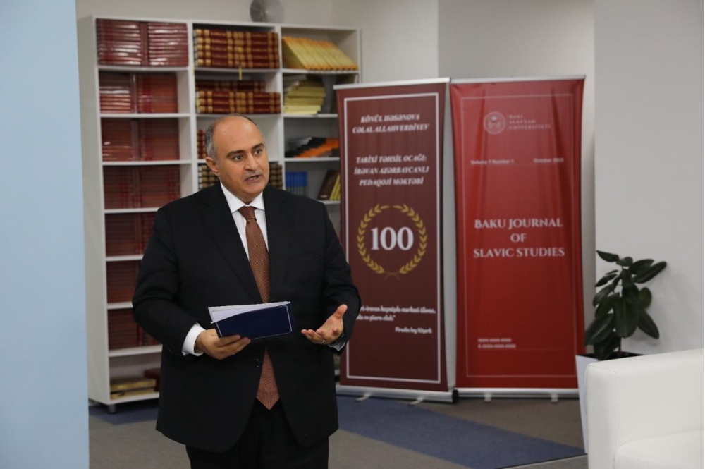A.Nağıyev çıxışında tədbirin mövzusunun mahiyyətinə toxunaraq bildirib ki, müasir Azərbaycan dövlətçiliyinin banisi və memarı, Ulu Öndər Heydər Əliyevin irsi bu gün də ölkənin inkişaf strategiyasının əsasını təşkil edir. Gənc nəslin bu irsi dərindən öyrənməsi və mənimsəməsi istiqamətində universitetin qarşıya qoyduğu vəzifələrdən danışan rektor bu baxımdan Dilarə Seyidzadə ilə keçirilən görüşləri xüsusi əhəmiyyətli adlandırıb.