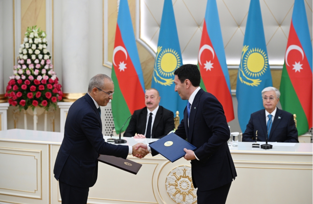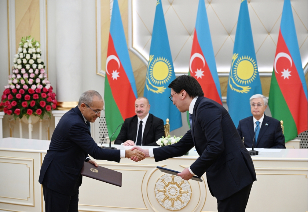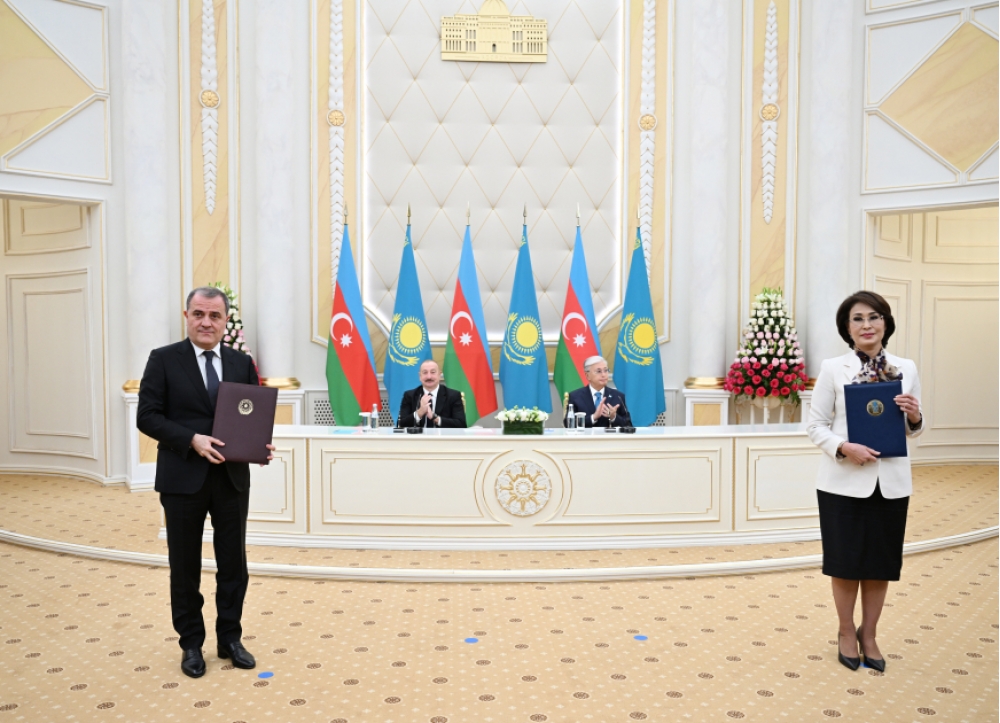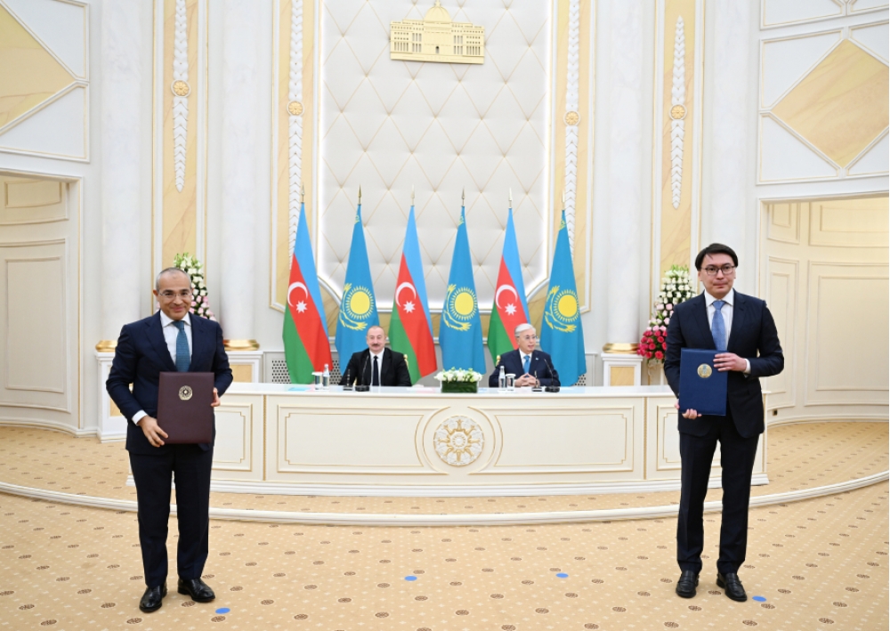 Sonra Azərbaycan-Qazaxıstan sənədləri mübadilə olundu.