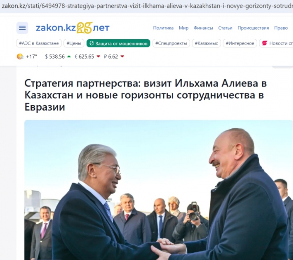 “Baq.kz” saytında dərc olunan materialda bildirilir ki, Azərbaycan Prezidenti İlham Əliyevin Qazaxıstana dövlət səfəri iki ölkə arasında strateji münasibətlərin inkişafında mühüm mərhələ olub.