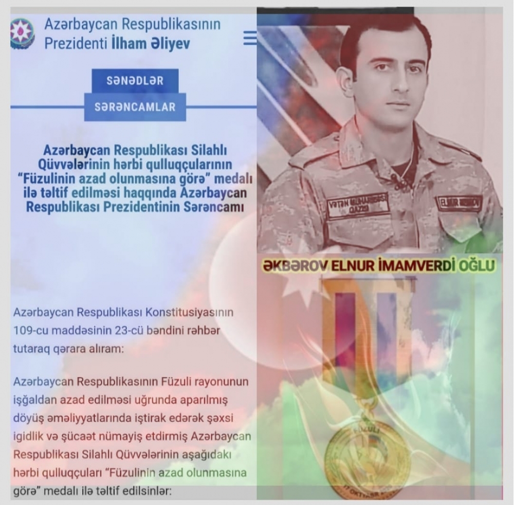 -Vətən müharibəsi günlərində şanlı ordumuzun hər bir əsgər və zabiti qorxmazlıq, igidlik nümayiş etdirdi. Onların arasında yaralananlar da oldu, şəhid olanlar da (Allah bütün şəhidlərimizə rəhmət eləsin). Onu da deyim ki, mən artelleriya bölməsinin döyüşçüsü olmuşam. Endirilən hər bir zərbənin qarşı tərəfə itki verməsini eşitmək bizi daha da ruhlandırırdı. Oktyabrın 3-də Füzuli rayonu istiqamətində gedən döyüşlərdə yanımıza minamyot mərmisi düşdü. Mən ağır yaralandım, sol qolumu itirdim, ayağımdan xəsarət aldım. Elə həmin anda kəlmeyi-şəhadətimi dedim. Qismətimdə şəhidlik yox imiş. Sən demə, şəhidlik zirvəsi hər kəsə qismət olmur. Belə ki, yoldaşlarımın ilk tibbi yardımı məni yenidən həyata qaytardı. Məhz onların sayəsində döyüş meydanından təxliyə olundum. Amma yaralanmağıma görə çox təəssüfləndim. Çünki sona qədər düşmənlə vuruşmaq niyyətində idim. Onu da bildirim ki, həmin döyüş meydanında mənimlə birgə 8 nəfər yaralandı, bir yoldaşımız isə şəhid oldu. Bu məqamda Prezident İlham Əliyevin müdrik fikirlərini də xatırlatmaq istərdim: “Qələbəni şəhidlərimizin qanı hesabına qazanmışıq. Şəhidlər bizim qəlbimizdə əbədi yaşayır, yaşayacaq".