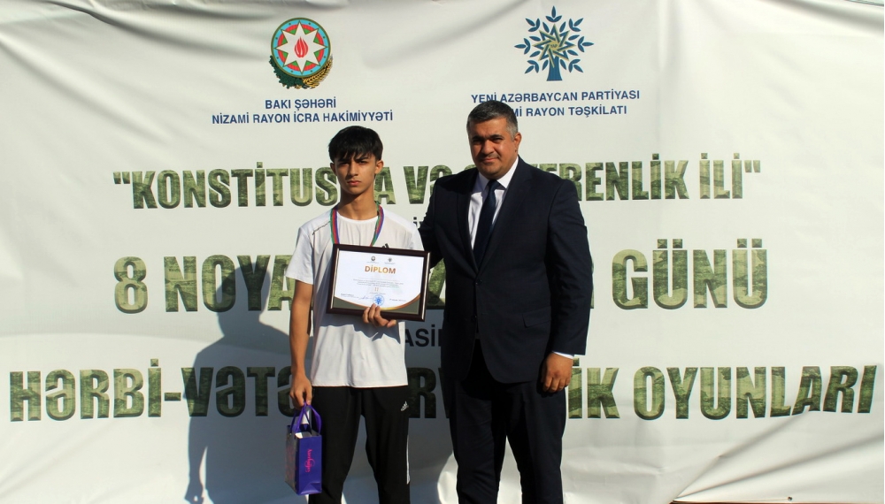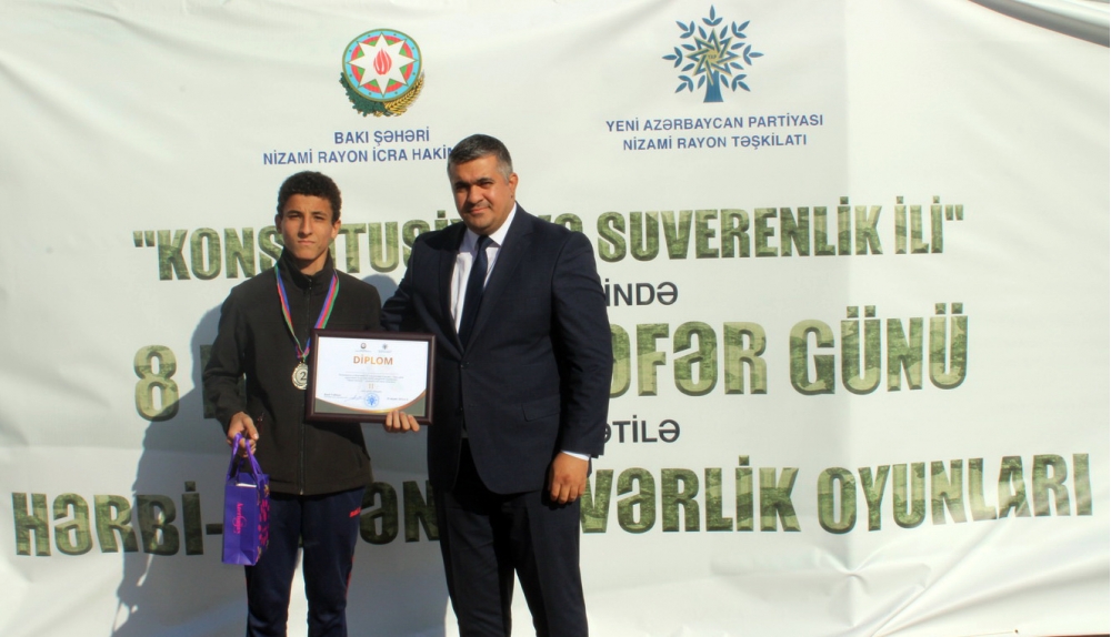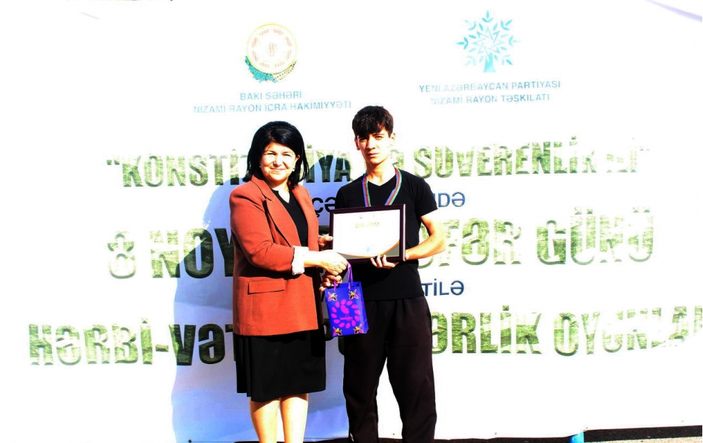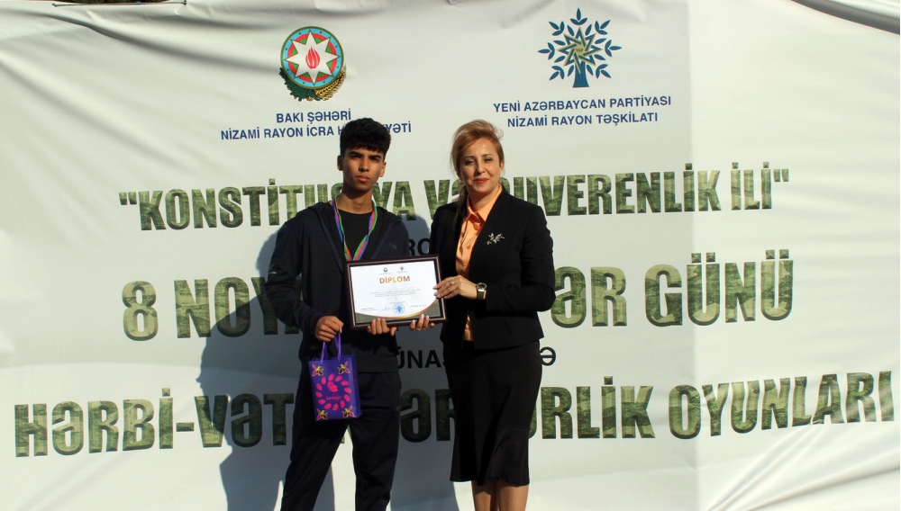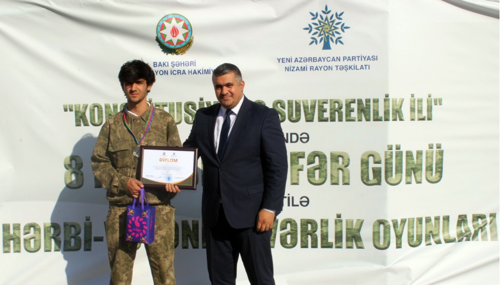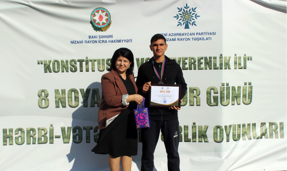“Konstitusiya və Suverenlik İli” çərçivəsində 8 noyabr – Zəfər günü münasibətilə Nizami Rayon İcra Hakimiyyətinin və Yeni Azərbaycan Partiyası Nizami rayon təşkilatının birgə təşkilatçılığı ilə hərbi-vətənpərvərlik oyunları keçirilib.