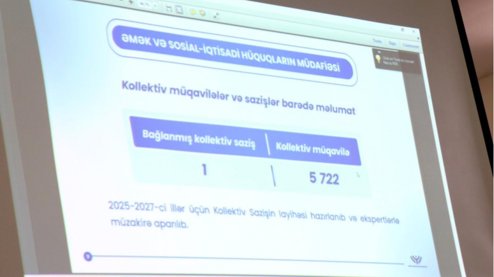 Təqdimatla çıxış edən Mirzə Cəfərzadə həmkarlar ittifaqının fəaliyyəti, üzvlük imkanları və gənclər üçün həyata keçirilən sosial layihələr barədə ətraflı məlumat verib.