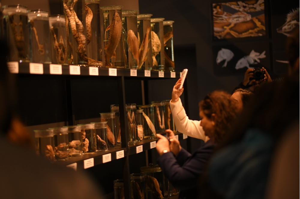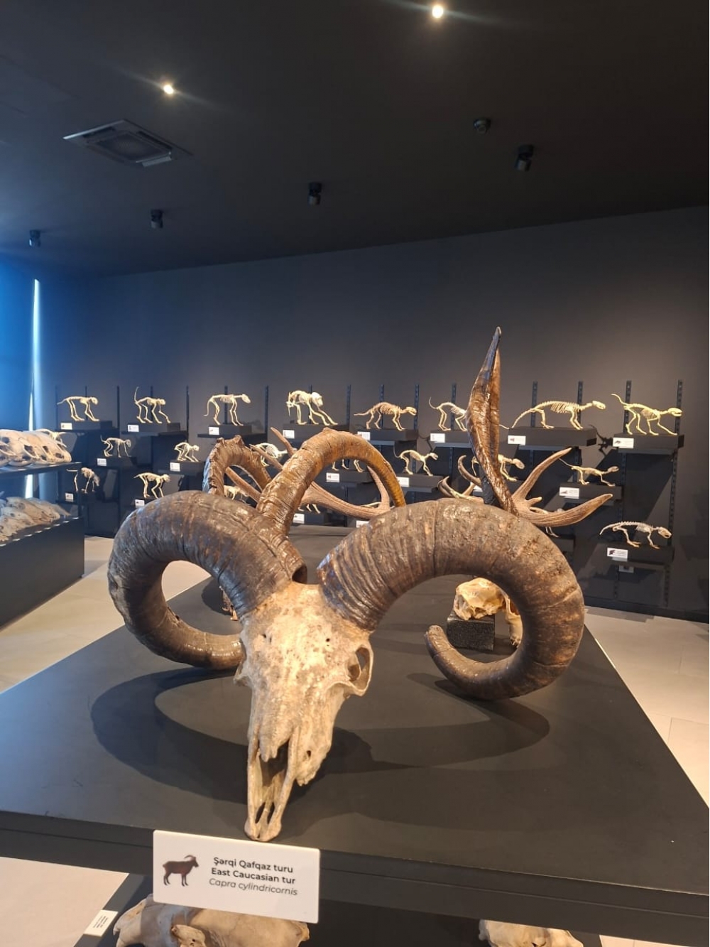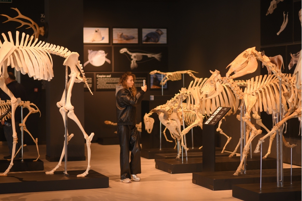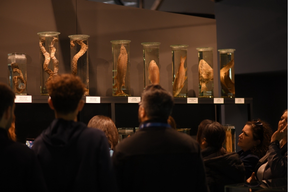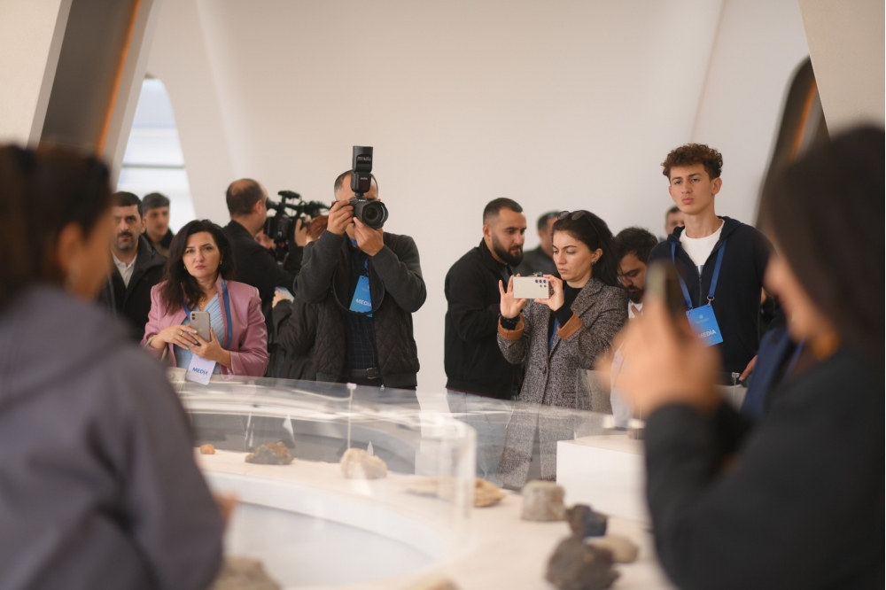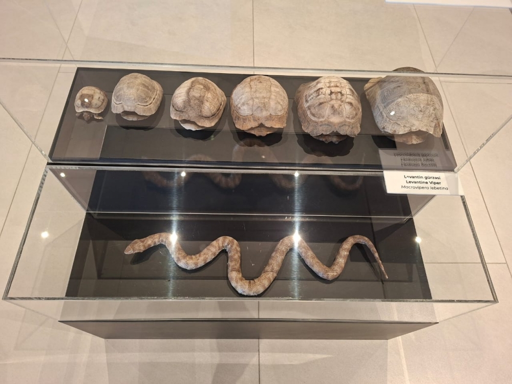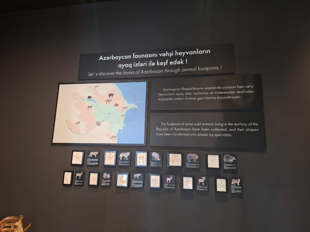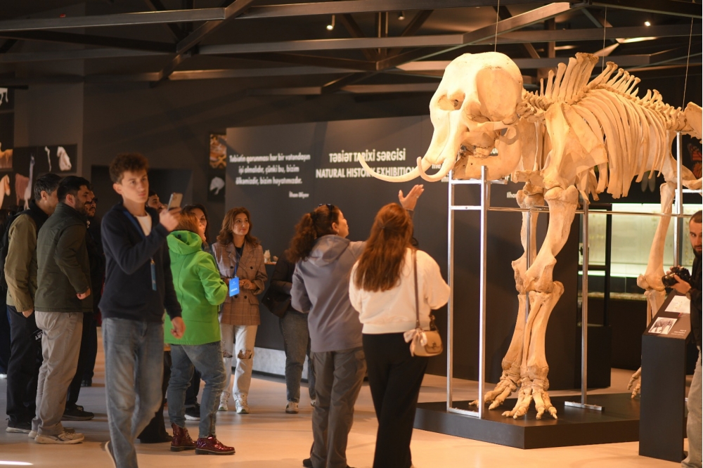 Jurnalistlər daha sonra Kompeksdə mövcud olan Təbiət tarixi sərgi zalında ekponatlarla tanış olublar. Sərginin “Böyük pişiklər”, “Qobustan faunası”, “Azərbaycanın vəhşi heyvanlarının ayaq izləri”, “Azərbaycanın həşərat dünyası”, “Kiçik ölçülü heyvan skeletləri” guşələrində Azərbaycan və dünya faunasına aid vəhşi və ev heyvanlarının skeletləri, Azərbaycan təbiətinə aid olan həşəratlar, suda-quruda yaşayanlar və sürünənlər sərgilənir. Nümayiş etdirilən bütün heyvan skeletləri və canlılar orijinal eksponatlardır. Bu eksponatlar bioetika normalarına uyğun olaraq hazırlanıb və bioloji ölümdən sonra Azərbaycan mütəxəssisləri tərəfindən onilliklər ərzində müxtəlif yerlərdən toplanmış heyvan skeletlərindən ibarətdir. Təbiət tarixi sərgisi Azərbaycanın faunasının zənginliyini, biomüxtəlifliyini nümayiş etdirir. Sərgidə Azərbaycan və dünya faunasına aid 98 heyvan skeleti, 870 müxtəlif növ qurudulmuş həşərat, xüsusi məhlulda nümayiş etdirilən 57 canlı, bir sıra sürünən və suda-quruda yaşayan heyvanlar, həmçinin paleontoloji eksponatlar nümayiş etdirilir. Burada, həmçinin milli parklarımızda dövlət mühafizəsinə götürülmüş bir sıra heyvanların, o cümlədən bəbir, bezoar keçisi, ceyran, Xəzər suitisinin arealları haqqında məlumat verilib.