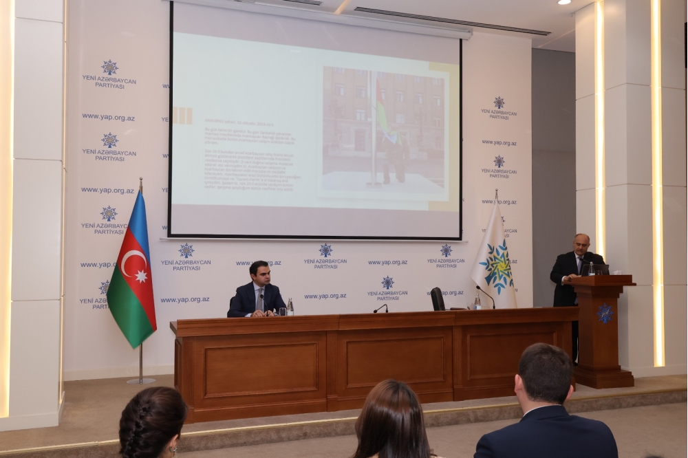 Açılış nitqi ilə qonaqları salamlayan YAP Gənclər Birliyinin sədri Bəxtiyar İslamov “Konstitusiya və Suverenlik ili” çərçivəsində baş tutan seminarın xüsusilə Zəfər Günü ərəfəsində keçirilməsinin önəmini vurğulayıb.