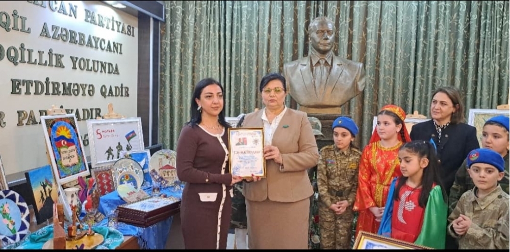 Sonda YAP Bərdə rayon təşkilatının sədri Faqət Şadlinskaya tərəfindən rayonun ictimai- siyasi həyatında fərqlənən YAP üzvlərinə təşkilatın  "Təşəkkürnamə"si təqdim edilib.