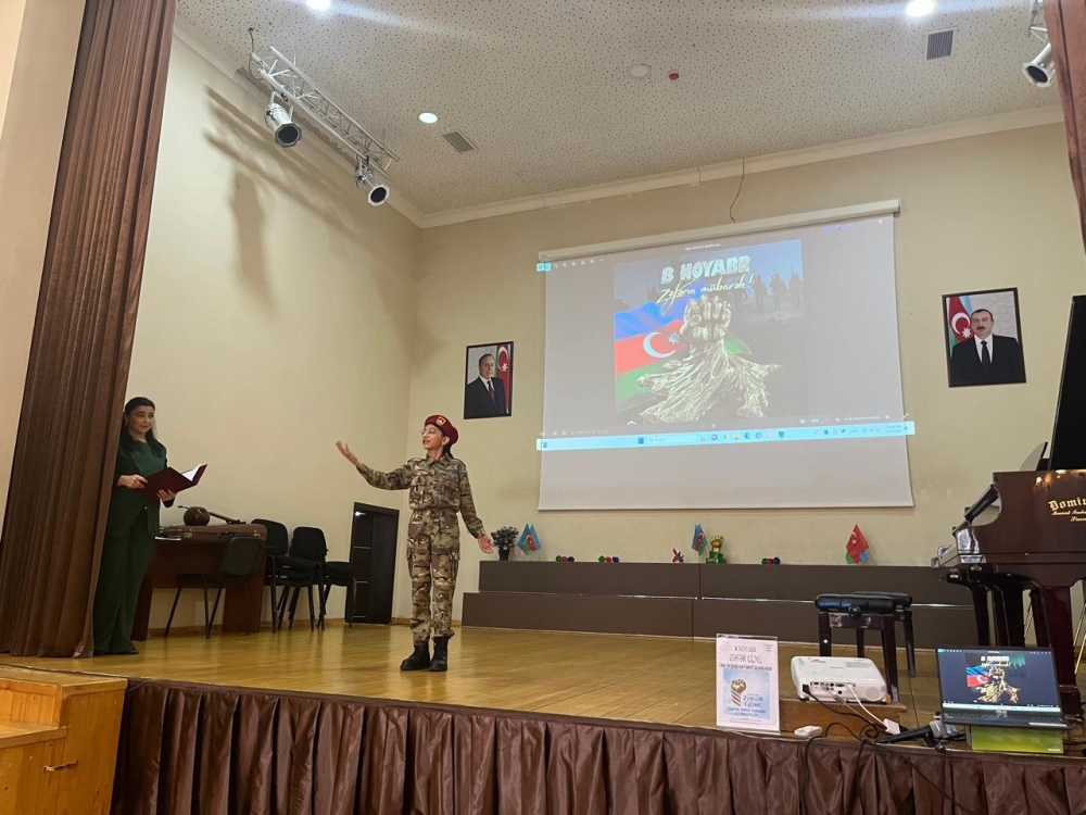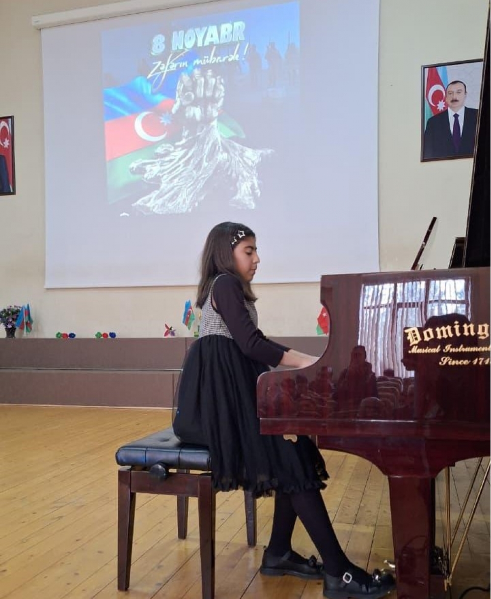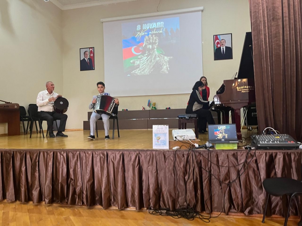 Sonra tədbirdə Cabbar Qaryağdıoğlu adına 9 №-li Musiqi Məktəbinin kollektivi tərəfindən hazırlanmış “Zəfər sənə çox yaraşır, Azərbaycan” adlı videoçarx və xüsusi kompazisiya nümayiş etidrilib. Həm Qarabağın və ətarf ərazilərin düşmən tapdağından azad edilməsinə həsr olunmuş videoçarx, həm də uşaqların ifasında yüksək məharətlə səslənən şeirlər, musiqi nömrələri və mahnılar tamaşaçılar tərəfindən alqışlarla qarşılanıb.