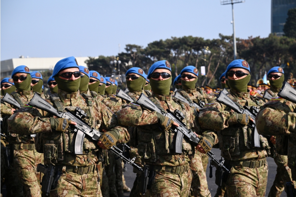 Dövlət başçılarının çıxışlarından sonra Hərbi parad başladı.