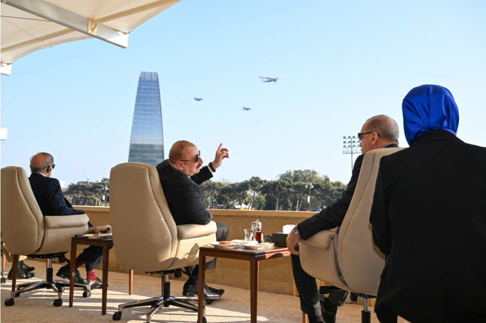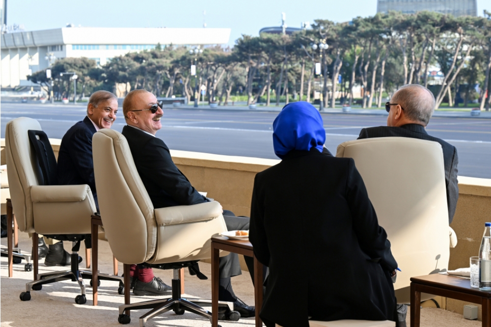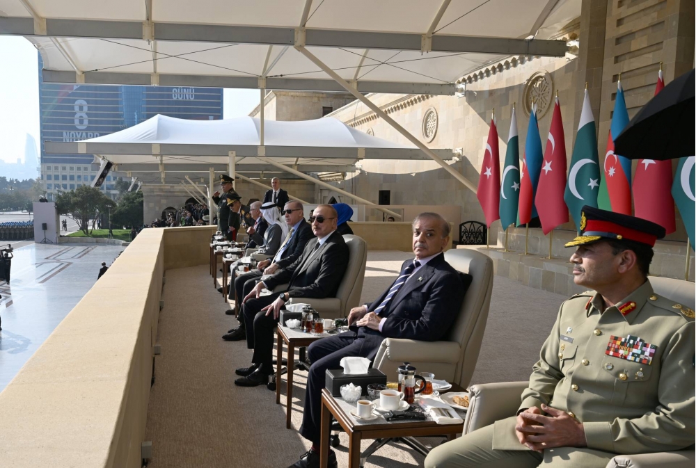 “İki sahil” xəbər verir ki, Azərbaycan Respublikasının Prezidenti İlham Əliyev, birinci xanım Mehriban Əliyeva, Türkiyə Respublikasının Prezidenti Rəcəb Tayyib Ərdoğan, Pakistan İslam Respublikasının Baş naziri Məhəmməd Şahbaz Şərif paradda iştirak ediblər.