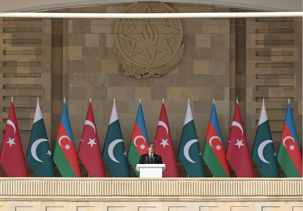 Daha sonra Pakistan İslam Respublikasının Baş naziri Məhəmməd Şahbaz Şərif çıxış etdi.