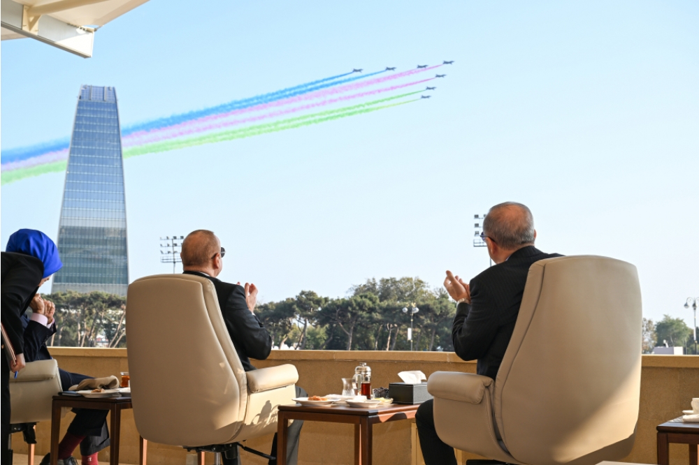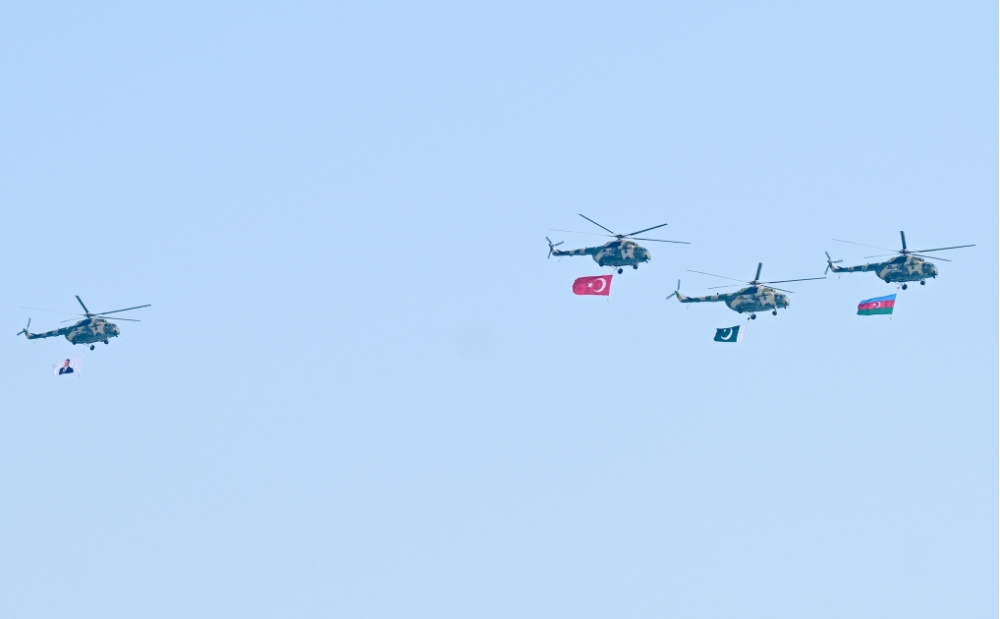 Bundan sonra Azadlıq meydanı üzərində Azərbaycan və Türkiyə pilotlarının iştirakı ilə Hərbi Hava Qüvvələrinə məxsus döyüş təyyarələrinin və helikopterlərin uçuşu oldu.