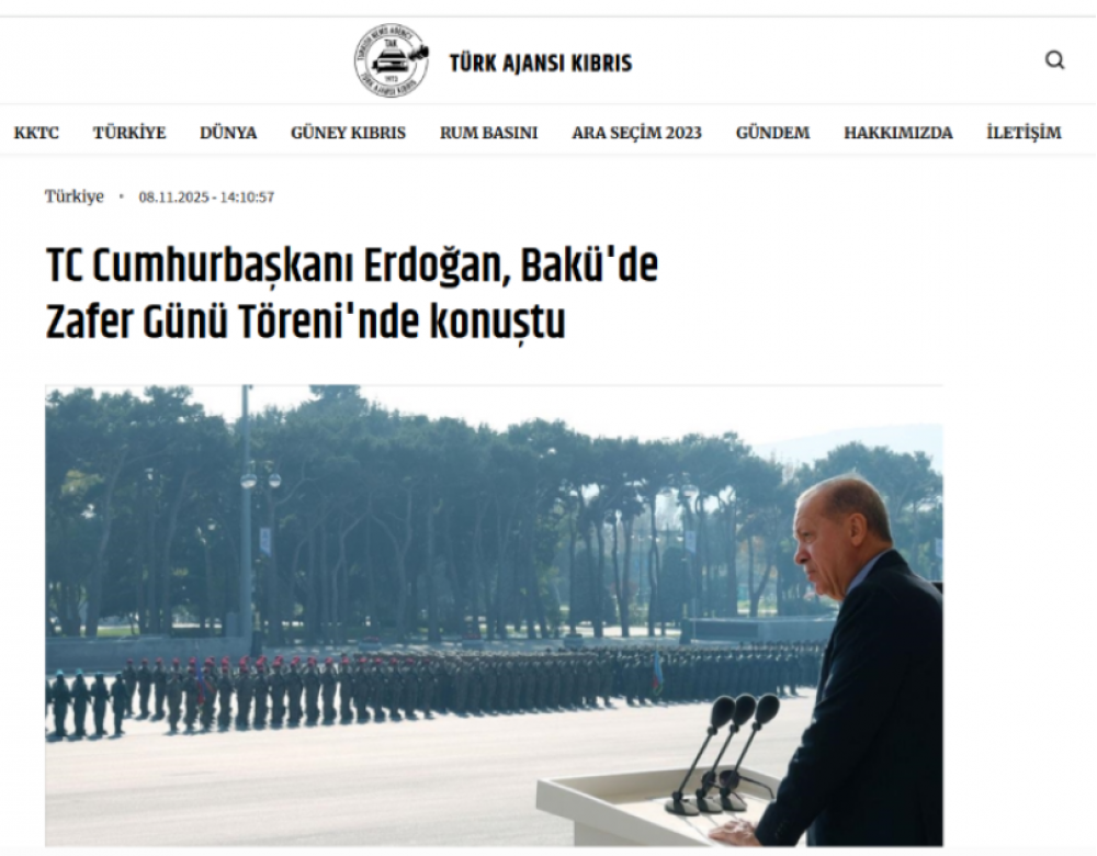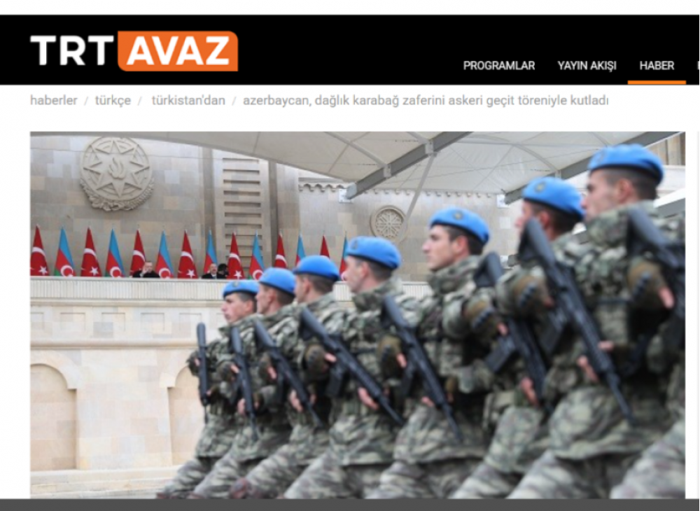 Türkiyənin və Şimali Kipr Türk Cümhuriyyətinin aparıcı informasiya agentlikləri, televiziya kanalları, qəzetləri və xəbər portalları Vətən müharibəsində Qələbənin beşinci ildönümünə həsr olunmuş Hərbi paradla bağlı mövzunu geniş işıqlandırıblar.