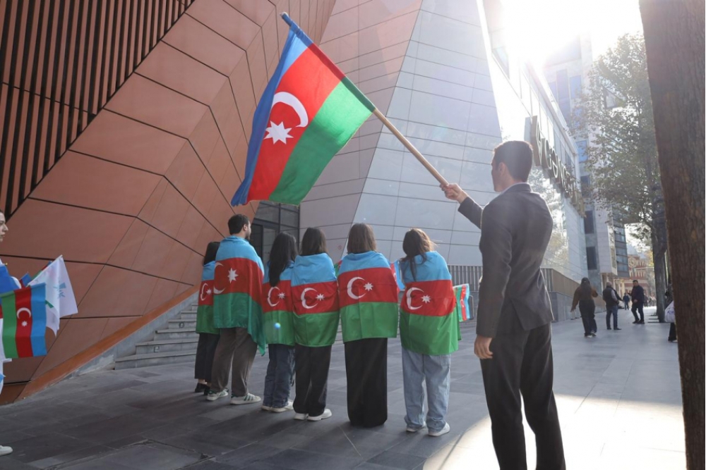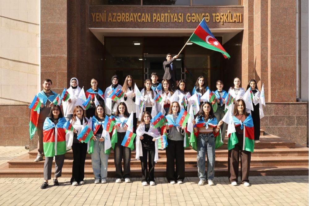9 Noyabr - Dövlət Bayraq Günündə Yeni Azərbaycan Partiyası (YAP) Gəncə şəhər təşkilatı “Hərəyə bir bayraq” adlı yürüş təşkil edib.