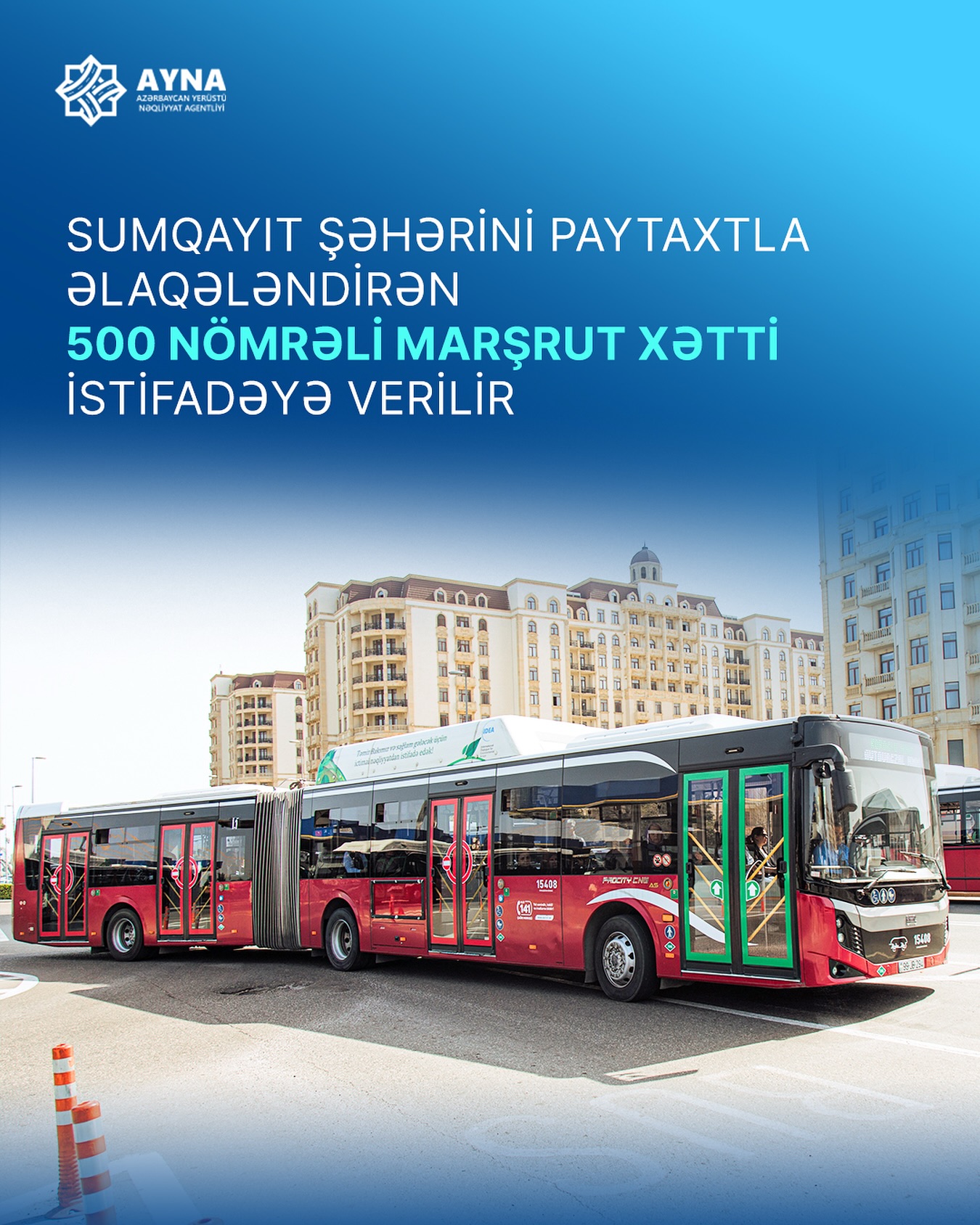 Sumqayıt şəhərindən paytaxta böyük sərnişin axını nəzərə alınaraq, həmçinin vətəndaşların metronun “20 Yanvar” stansiyası istiqamətində sürətli və rahat gedişlərini təmin etmək məqsədilə Azərbaycan Yerüstü Nəqliyyat Agentliyi (AYNA) tərəfindən 500 nömrəli müntəzəm avtobus marşrutu təşkil edilib.