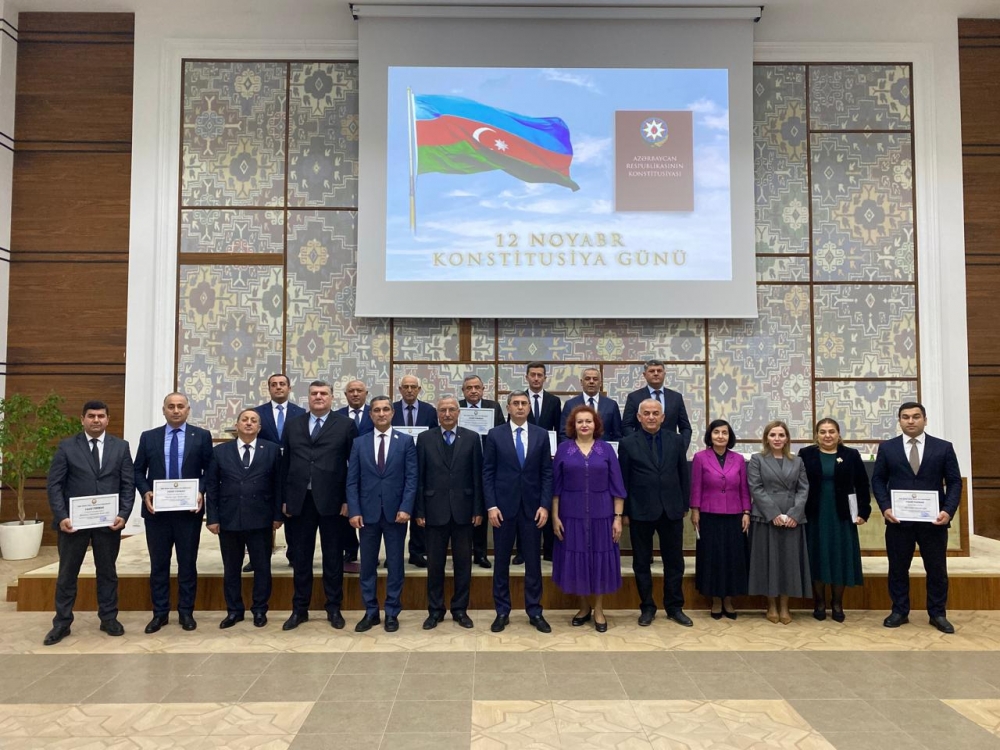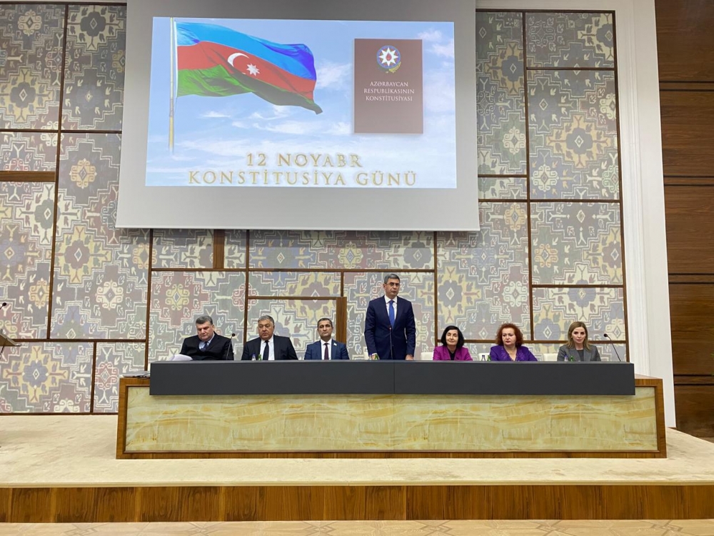 Tədbirdə Milli Məclisin deputatları Soltan Məmmədov və Gülşən Paşayeva, professor İradə Hüseynova, Mətbuat Şurasının İdarə Heyətinin üzvü, politoloq Yeganə Hacıyeva, YAP Xəzər rayon təşkilatının sədri Namiq Əhmədov və Xəzər Rayon Məhkəməsinin sədri Abbas Rzayev öz çıxışlarında Ulu Öndər Heydər Əliyevin bilavasitə rəhbərliyi ilə demokratik dəyərlərə və prinsiplərə uyğun hazırlanan və qəbul edilən ilk milli Konstitusiyamızın tarixi əhəmiyyətindən danışıblar. Bildirilib ki, Prezident, Ali Baş Komandan İlham Əliyevin müdrik rəhbərliyi ilə düşmən üzərində qazanılan böyük Qələbə sayəsində ərazi bütövlüyümüz və suverenliyimiz tam bərpa edilməklə, Azərbaycan Respublikası Konstitusiyasının hüquqi qüvvəsi bütün torpaqlarımızda bərqərar olub. Həmçinin, qeyd olunub ki, çağdaş Azərbaycan tarixinə Heydər Əliyev Konstitusiyası kimi daxil olan Əsas Qanunda ali hakimiyyətin yeganə mənbəyinin məhz xalqa məxsusluğunun bəyan edilməsi, dolğun şərh olunan insan hüquq və azadlıqlarının təminatlı müdafiəsinin icra, qanunvericilik və məhkəmə orqanlarının ümdə vəzifəsi olaraq müəyyən edilməsi bu gün artıq dünya birliyində özünəlayiq yeri olan müstəqil respublikamızın ümumbəşəri demokratik imicini daha da yüksəldib.