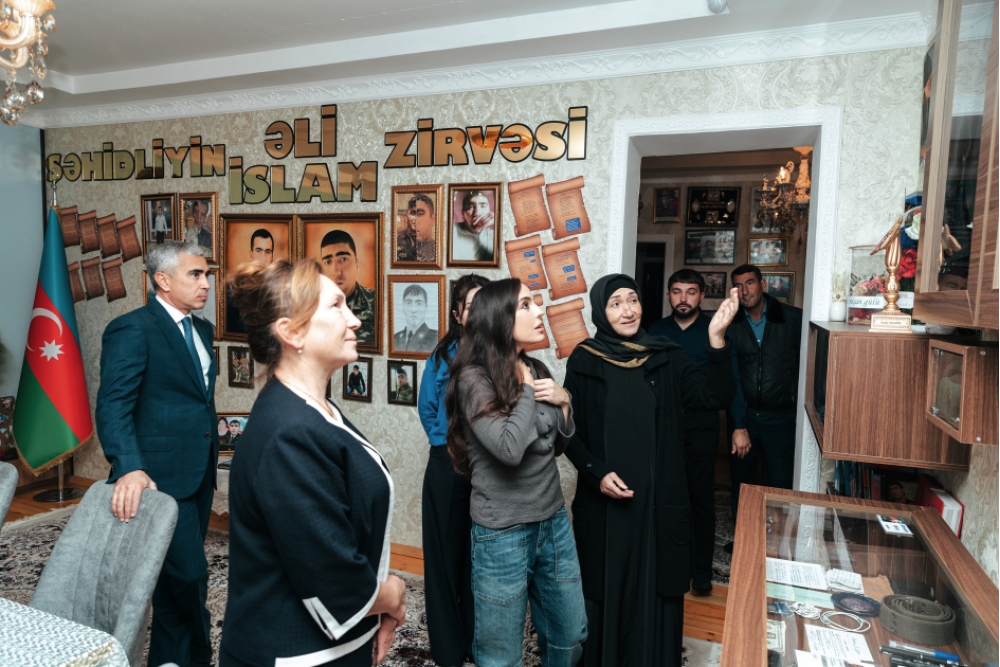 “İki sahil” xəbər verir ki, səfər çərçivəsində Leyla Əliyeva əvvəlcə Vətən uğrunda canlarını fəda etmiş şəhid qardaşlar Əhmədovların ailəsini ziyarət edib. O, şəhidlərin xatirəsini ehtiramla yad edib, anası Sevinc Əhmədova ilə söhbət edib, qəhrəman oğullarının həyatı, döyüş yolu, eləcə də ailənin qayğı və ehtiyacları ilə maraqlanıb.