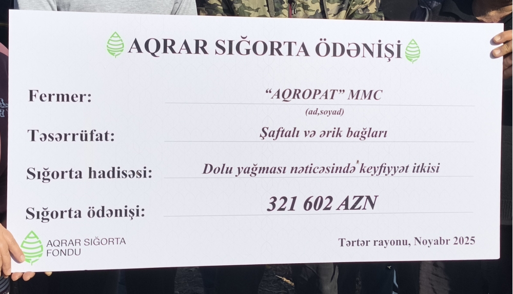 Nəticədə meyvə bağına dolu nəticəsində miqdar itkisi ilə yanaşı, keyfiyyət itkisinin də baş verdiyi müəyyən edilib. Aqrar Sığorta Fondu tərəfindən aparılan hesablamalar əsasında təsərrüfata ümumilikdə 321 602 manat aqrar sığorta ödənişi təyin edilib.