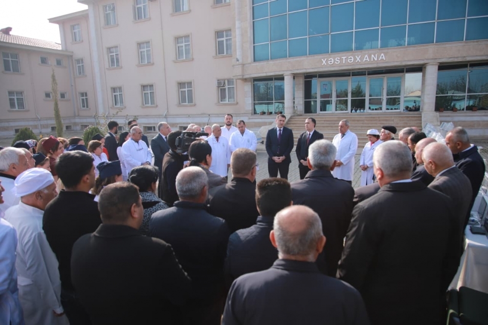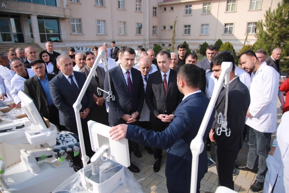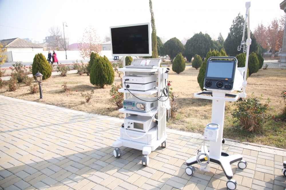 “İki sahil” xəbər verir ki, xəstəxananın maddi-texniki bazasının gücləndirilməsi məqsədilə həyata keçirilən islahatlar çərçivəsində tibb müəssisəsinə 1 ədəd laparoskopik dayaq dəsti, 2 ədəd 12 kanallı EKQ cihazı, 1 ədəd neonatal funksiyalı İVL cihazı, 2 ədəd standart funksiyalı İVL cihazı, 3 ədəd defibrilyator, 2 ədəd çoxfunksiyalı defibrilyator, 38 ədəd standart funksiyalı xəstəbaşı monitoru, 5 ədəd çoxfunksiyalı xəstəbaşı monitoru,1 ədəd tam rəqəmsal, yüksək həssaslığa malik ultrasəs müayinə cihazı (USM) təhvil verilmişdir.