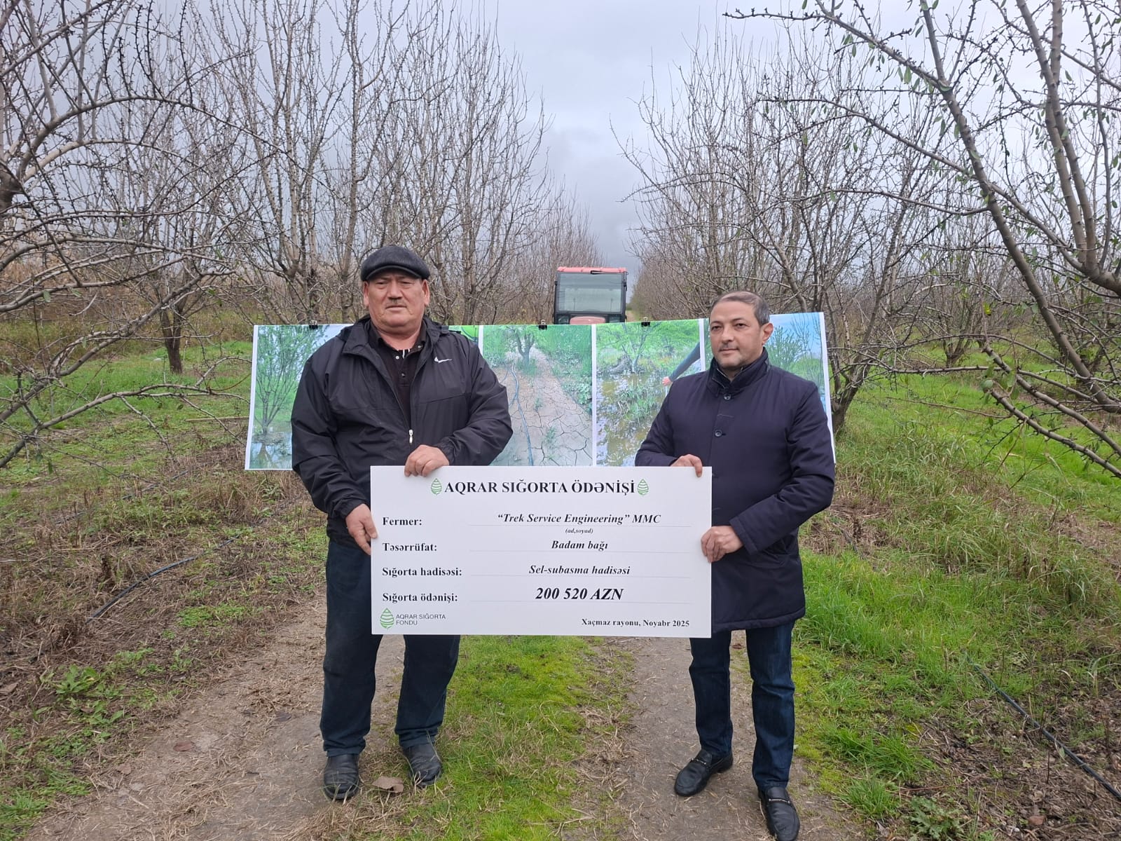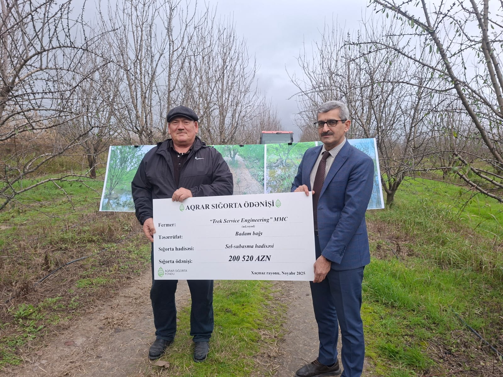 Baş aqranom bildirib ki, bizim təsərrüfatı sel basdı, ağır vəziyyət yaranmışdı: "Əgər sığortalanmasaydıq, heç nə əldə edə bilməzdik. Bağı salmaq, ərsəyə gətirmək böyük xərc tələb edir. Dərmanıdır, fəhlə haqqı ödənilir və digər xərclər. Ona görə də bu proses bizim üçün çox uğurludur, çox razıyıq. Subasma Ağ Çayın daşması nəticəsində baş vermişdi. Su sahələrdə dayanmışdı və hər yeri lilləmişdi. Ağaclar çox pis vəziyyətdə idi. Bizim 6 - 7 illik badam bağımız var, normalda 100 tondan yuxarı məhsul götürməli idik, amma sel nəticəsində cəmi 19 ton məhsul götürə bildik. Su ağacları stressə saldı, lil dibini bağladı, oksigen qəbul etmədi, meyvələr töküldü. Yəni, iki tərəfli böyük ziyan oldu."