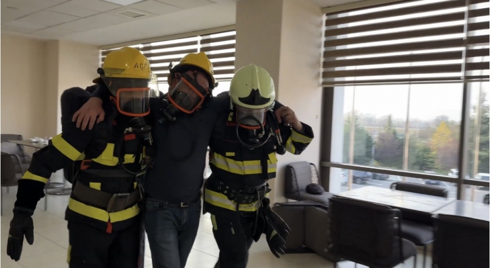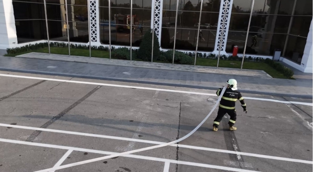 Baş vermiş şərti yanğın yerinə operativ çatan yanğından mühafizə bölmələri obyektin qüvvələri ilə qarşılıqlı fəaliyyətdə işçilərin “təhlükəli ərazidən” təxliyə edilməsi, “yanğın” yerində çevik kəşfiyyatın aparılması və “yanğının söndürülməsi” əməliyyatını yerinə yetiriblər.