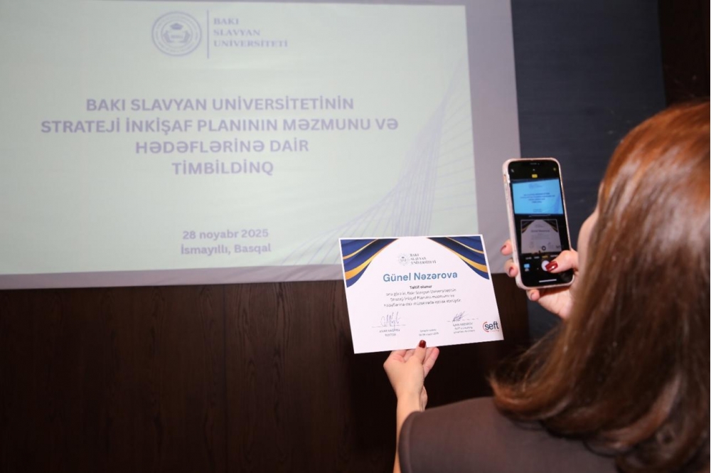 BSU-nun Tədris departamentinin direktoru Zümrüd Yolçuyeva SİP-dən irəli gələn səriştəəsaslı təhsil proqramların formalaşması və innovasiya ekosistemi sistemi ilə bağlı məlumat verib. Z.Yolçuyeva BSU-nun SİP çərçivəsində əldə olunan nəticələr barədə danışaraq keyfiyyət mədəniyyəti, eləcə də ömürboyu öyrənmə istiqamətində mühüm işlərin görüldüyünü qeyd edib.