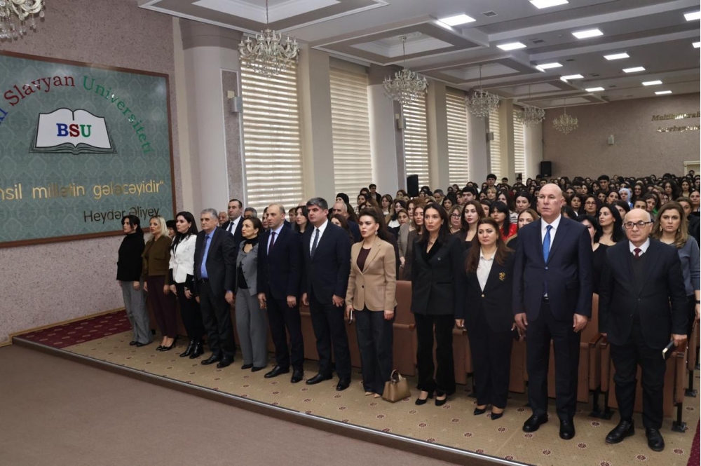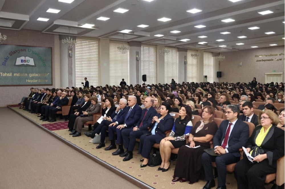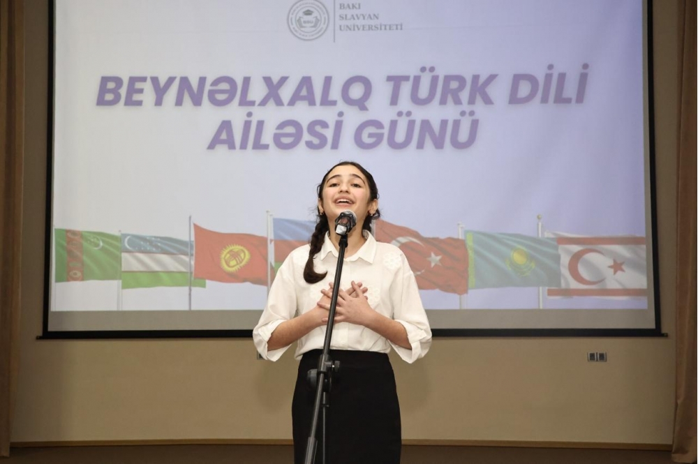 Dekabrın 15-də Bakı Slavyan Universitetində (BSU) Beynəlxalq Türk Dili Ailəsi Gününə həsr olunan “Türk dili-ana dilim” adlı tədbir keçirilib. Tədbirdə BSU-nun rektoru Anar Nağıyev, Milli Məclisin (MM) deputatı, Azərbaycan-Türkiyə(Türkmənistan, Özbəkistan, Qırğızıstan) parlamentlərarası əlaqələr üzrə işçi qrupunun üzvü Məlahət İbrahimqızı, Azərbaycan Dövlət Pedaqoji Universitetinin(ADPU) Beynəlxalq əlaqələr üzrə prorektoru, professor Mahirə Nağıqızı, MM-in deputatı, Türk Dövlətləri Parlament Assambleyasının üzvü Günay Əfəndiyeva , MM-in deputatı, Azərbaycan-Paraqvay parlamentlərarası əlaqələr üzrə işçi qrupunun rəhbəri Hikmət Babaoğlu, Bakı Yunus Emre İnstitutunun direktoru Gökhan Seyhan, BSU-nun Türkologiya kafedrasının professoru Nuridə Novruzova, universitetin professor-müəllim heyəti və tələbələri iştirak ediblər.