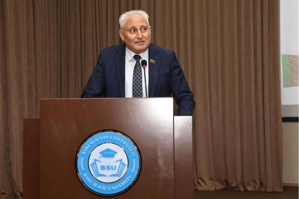 Çıxışda BSU-nun Bolqarıstan, Ukrayna, Belarus və Rusiyada fəaliyyət göstərən mərkəzlərində Azərbaycan dili dərslərinin təşkili, eləcə də xarici tələbələr üçün hazırlanmış Azərbaycan dili dərslikləri barədə məlumat verilib. Qeyd olunub ki, Azərbaycan dilinin və mədəniyyətinin qlobal təbliği BSU-nun əsas məramlarından biridir. Rektor son dövrlərdə BSU-nun türk dünyasının bir sıra nüfuzlu ali təhsil müəssisələri – Qazaxıstanın Şimkent Universiteti, Türkiyənin Mərmərə, Trakya, Tekirdağ Namik Kamal, Rumeli universitetləri, eləcə də Özbəkistan Namanqan Dövlət Universiteti ilə əməkdaşlıq əlaqələrinin genişləndirildiyini bildirib.