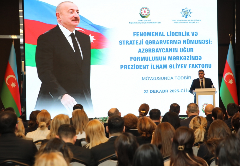Nizami Rayon İcra Hakimiyyəti və Yeni Azərbaycan Partiyası Nizami rayon təşkilatının birgə təşkilatçılığı ilə “Fenomenal liderlik və strateji qərarvermə nümunəsi: Azərbaycanın uğur formulunun mərkəzində Prezident İlham Əliyev faktoru” mövzusunda tədbir keçirilib.
