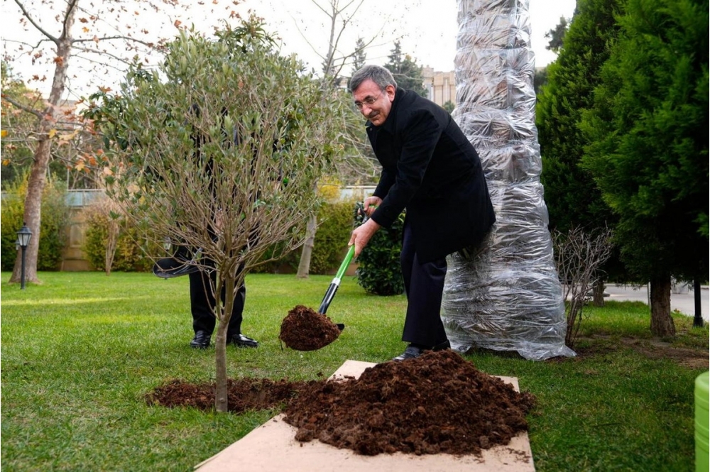 Ziyarət proqramı çərçivəsində Cevdet Yılmazın əlamətdar ziyarətinin xatirəsinə Katibliyin daxili həyətyanı sahəsində zeytun ağacı əkilib.