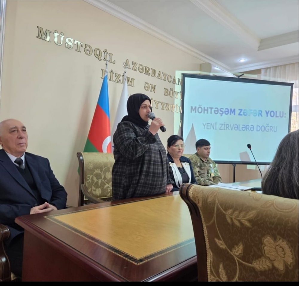 Sonda Qarabağ Regional Mədəniyyət İdarəsi Bərdə nümayəndəliyinin kollektivinin ifasında Vətən və Zəfər haqqında şer və mahnılar ifa olunub.