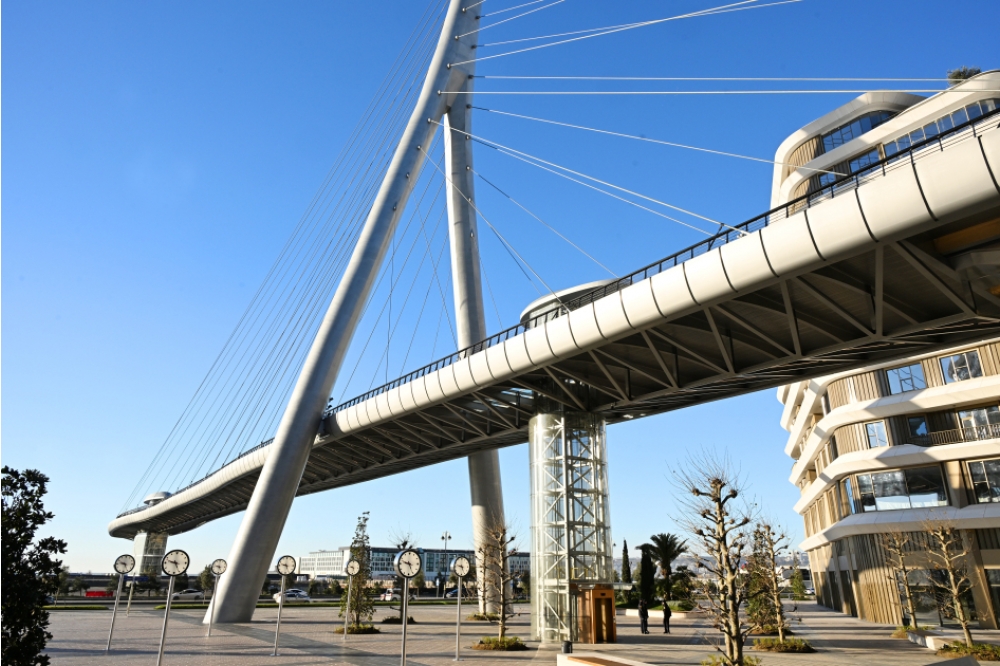 Dövlətimizin başçısı, birinci xanım və qızları “Bakı Ağ Şəhər”də Zaman meydanı və buradakı piyada körpüsünün açılışında da iştirak etdilər.