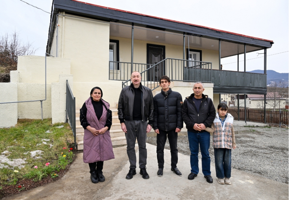 Sonra Prezident İlham Əliyev kənd sakini Sarvan Abbasovun ailəsinə baş çəkdi, yeni evdə yaradılmış şəraitlə tanış oldu.