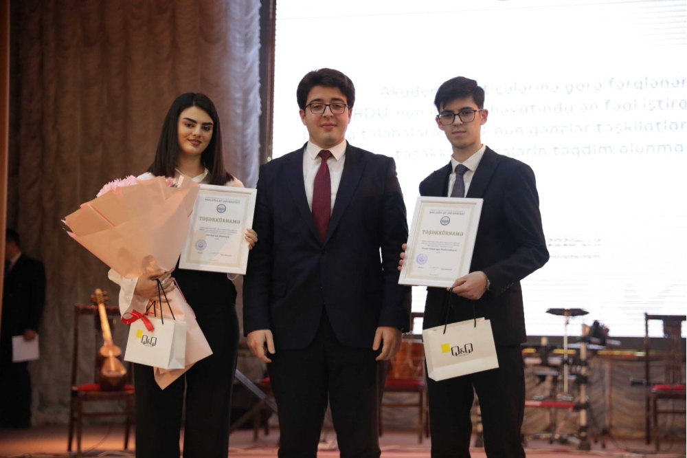 Sonra BDU-nun “İlin gənc alimi” müsabiqəsinin nəticələri elan olunub. Universitetin ictimai həyatında fəal iştirak edən bir sıra tələbələrə, BDU-nun gənclər təşkilatlarının üzvlərinə təşəkkürnamələr təqdim edilib.