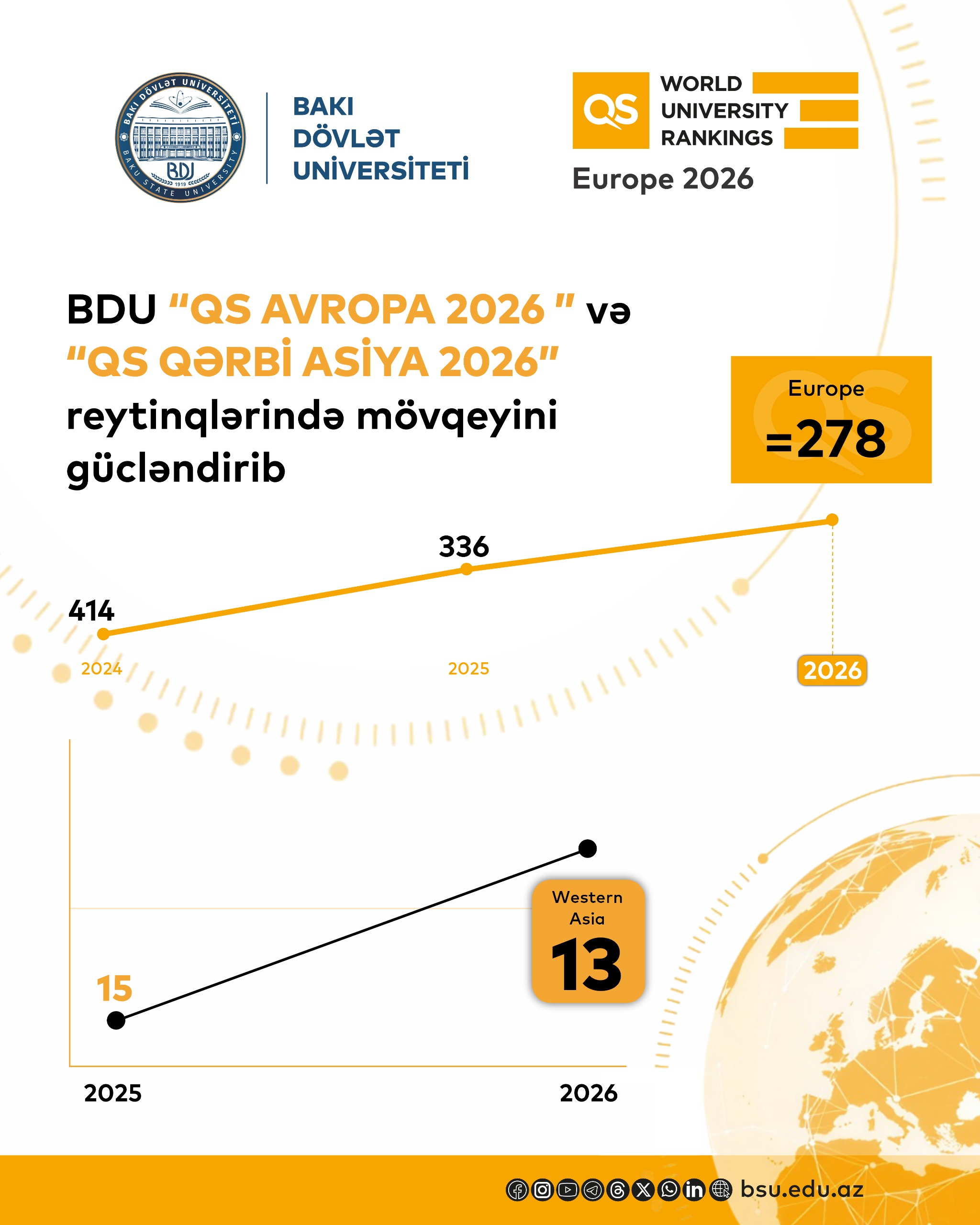 BDU “QS Avropa 2026” reytinqində mövqeyini gücləndirib