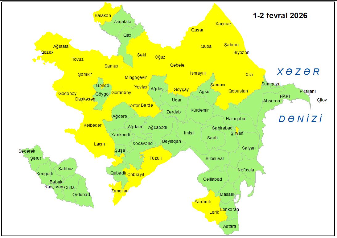 Milli Hidrometeorologiya Xidməti (MHX) fevralın 1-2-də bəzi bölgələrdə gözlənilən küləkli hava şəraiti ilə bağlı sarı xəbərdarlıq verib.