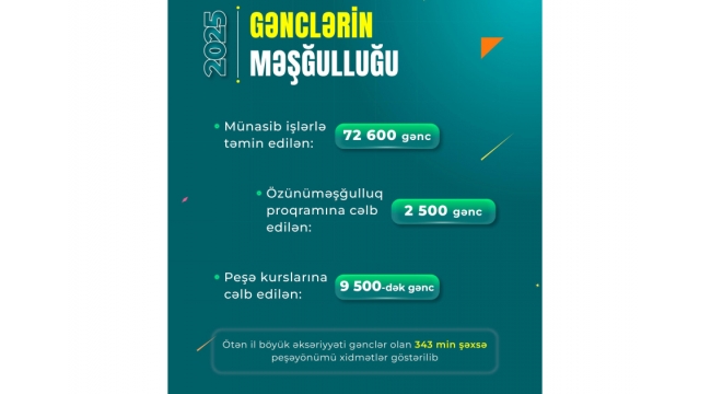 Ötən il 72 min 600 gənc işlə təmin edilib, 2500 gənc üçün kiçik bizneslər qurulub