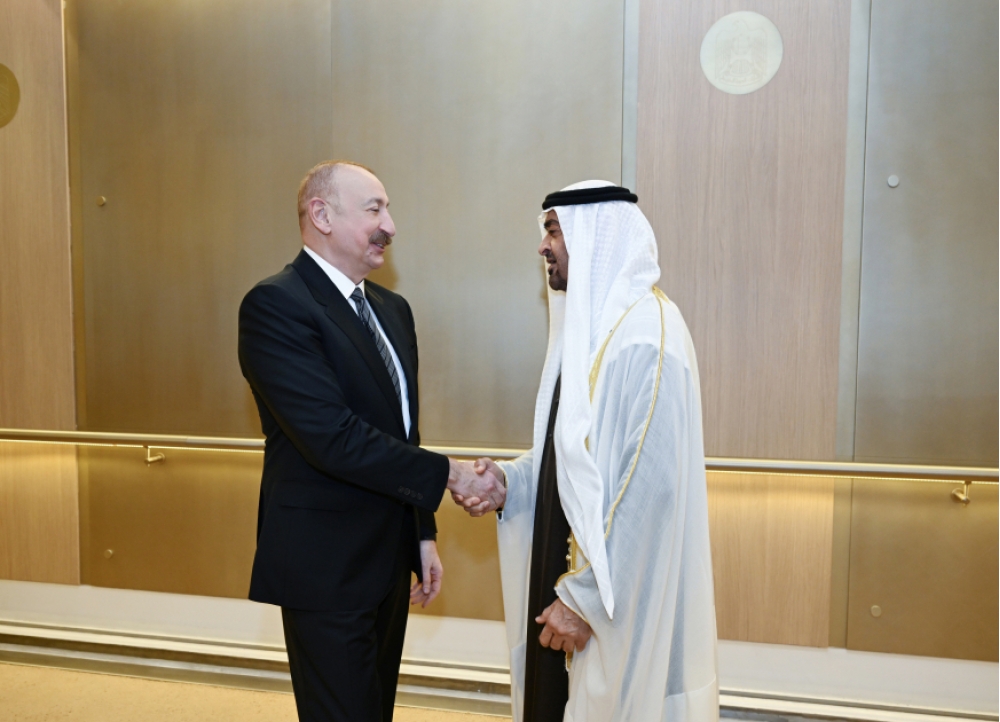 Prezident İlham Əliyevi Birləşmiş Ərəb Əmirliklərinin Prezidenti Şeyx Məhəmməd bin Zayed Al Nəhyan qarşıladı.