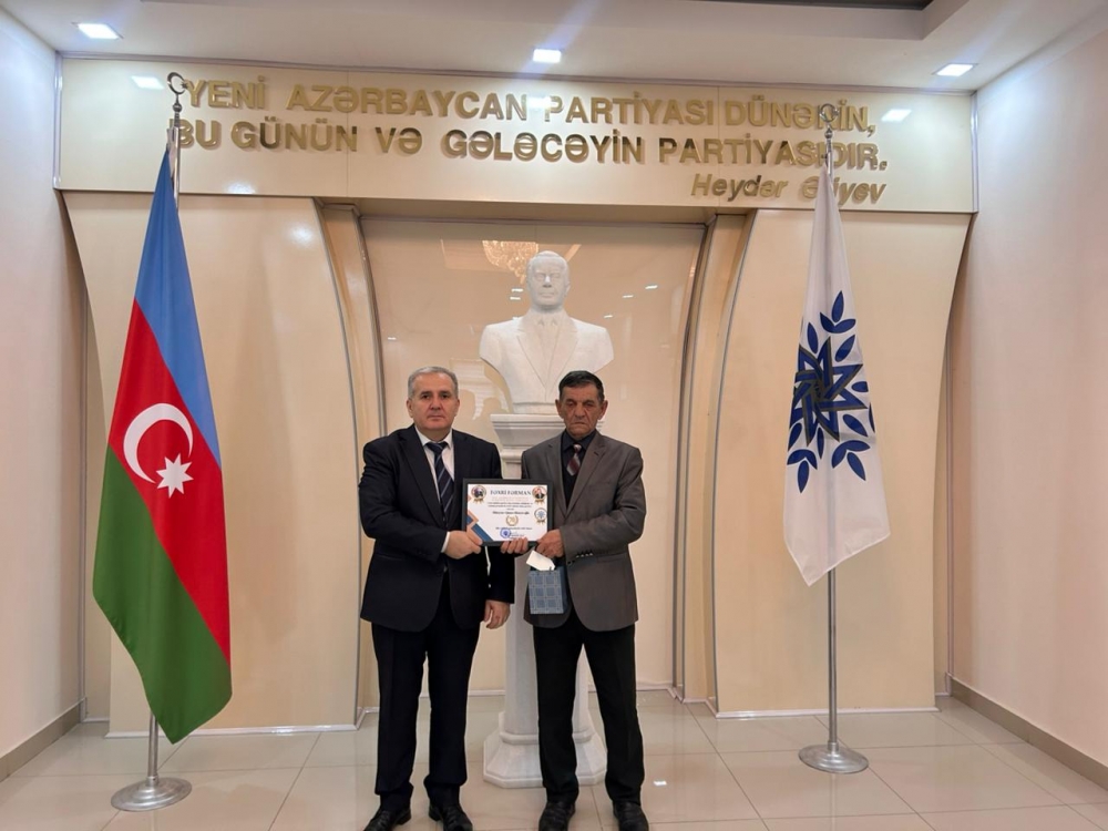 YAP Kürdəmir rayon təşkilatı tərəfindən Qasım Hüseynova partiya dəyərlərinin təbliğində və ictimai proseslərdə uzun illər aktiv iştirakına görə Fəxri Fərman və hədiyyə təqdim edilib.