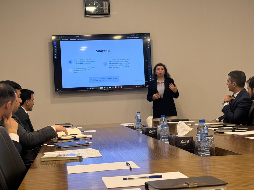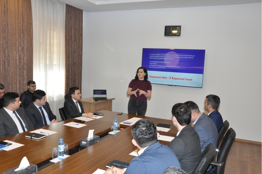Bulud Texnologiyaları və Kollektiv İş adlı təlimdə isə Milli Süni İntellek mərkəzinin İctimaiyyətlə əlaqələr üzrə mütəxəssisi Xanım Hacıyeva tərəfindən ofis alətlərinin rəqəmsal versiyalarından istifadə edərək eyni sənəd üzərində bir neçə şöbənin eyni vaxtda və koordinasiyalı şəkildə çalışmasının səmərəsi iştirakçılara aşılanıb.