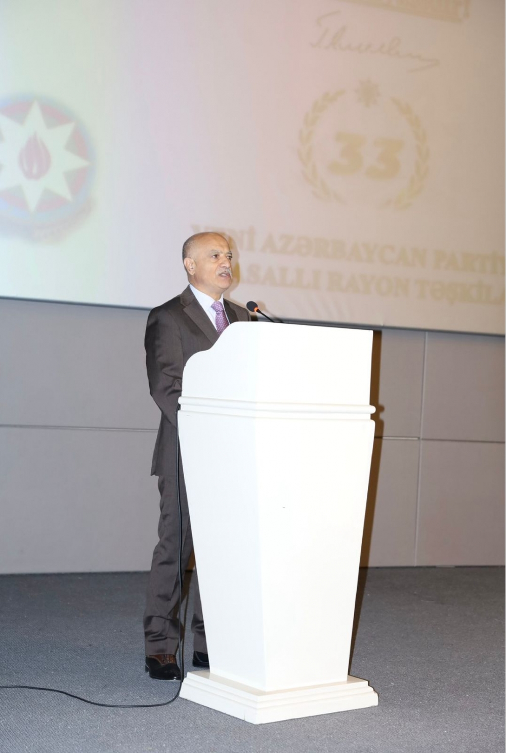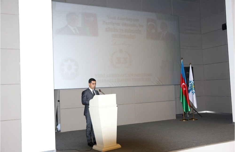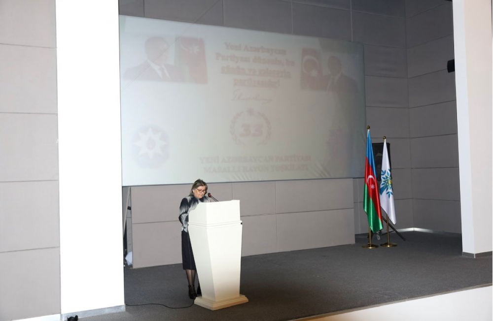 Yeni Azərbaycan Partiyası Masallı rayon təşkilatının sədri Seyfəddin Əliyev tədbir iştirakçılarını partiyanın Masallı rayon təşkilatının yaradılmasının 33-cü ildönümü münasibətilə təbrik etmiş, çıxış edərək xalqımızın böyük oğlu Heydər Əliyevin banisi olduğu tarixi zərurətdən yaranan Yeni Azərbaycan Partiyasının bu günə qədər keçdiyi siyasi mübarizələrlə dolu şərəfli yolundan danışıb. Bildirib ki, dahi şəxsiyyətin üzərinə böyük bir tarixi missiya götürərək yaratdığı Yeni Azərbaycan Partiyası müstəqil Azərbaycanın tarixində çox önəmli bir hadisə oldu. Qısa müddət ərzində cəmiyyətin aparıcı qüvvəsinə çevrilərək “Dünənin, bu günün və gələcəyin” partiyasına çevrildi. Bu gün partiya öz sıralarında vətənini sevən və xalqına sadiq olan vətəndaşların yer aldığı partiyadır. Bu gün əsası Heydər Əliyev tərəfindən qoyulan partiya ən şanlı tarixini yaşayır. Tarixin ciddi sınaqlarından çıxmış Yeni Azərbaycan Partiyası saysız-hesabsız tarixi nailiyyətlərə imza atmaqla daha da möhkəmlənib, daha da inkişaf edib. Ötən illər ərzində ölkəmizdə siyasi sabitliyin davamlı inkişafın təminatçısı kimi xalqın böyük əksəriyyətinin etimadını qazanıb.