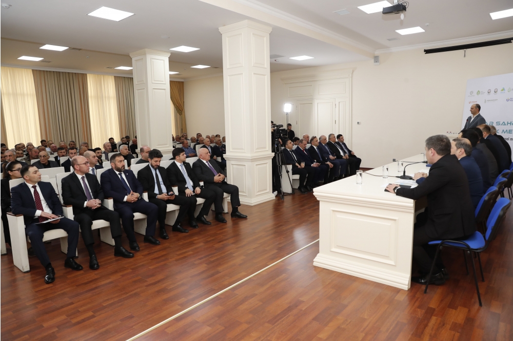 Kənd Təsərrüfatı Nazirliyinin İctimaiyyətlə əlaqələr və informasiya təminatı şöbəsinin müdiri Vüqar Hüseynov çıxışında işğaldan azad olunmuş ərazilərdə aqrar sahəyə dövlət dəstəyi mexanizmləri barədə geniş məlumat verib. O hazırda azad olunmuş ərazilərdə kənd təsərrüfatı təyinatlı torpaqların sahibkarlıq subyektlərinə icarəyə verilməsi üzrə investisiya müsabiqələrinin elan edildiyini xatırladıb, müsabiqələrin şərtləri barədə geniş məlumat verib. Quba-Xaçmaz iqtisadi rayonunda fəaliyyət göstərən fermer və sahibkarların meyvəçilik üzrə böyük təcrübəyə sahib olduğunu deyən Vüqar Hüseynov onları bu müsabiqələrdə aktiv iştiraka çağırıb.